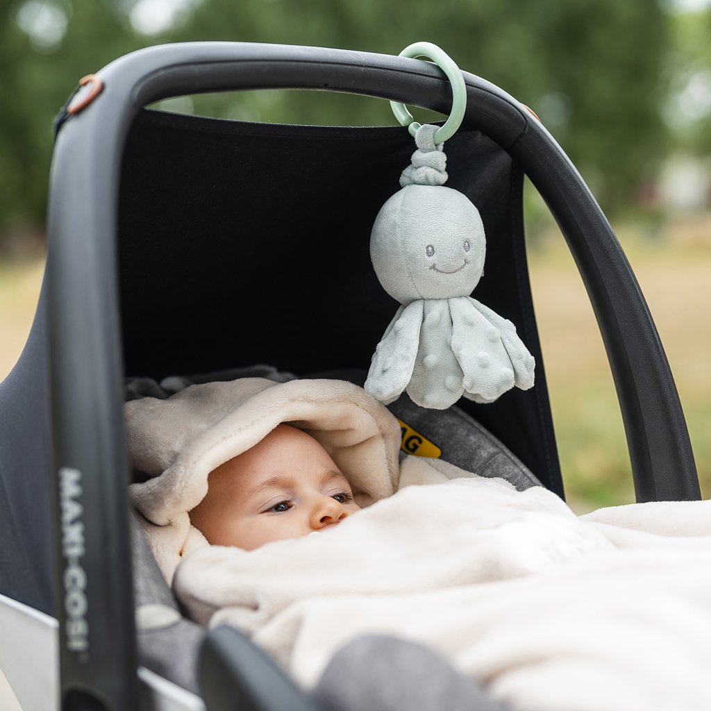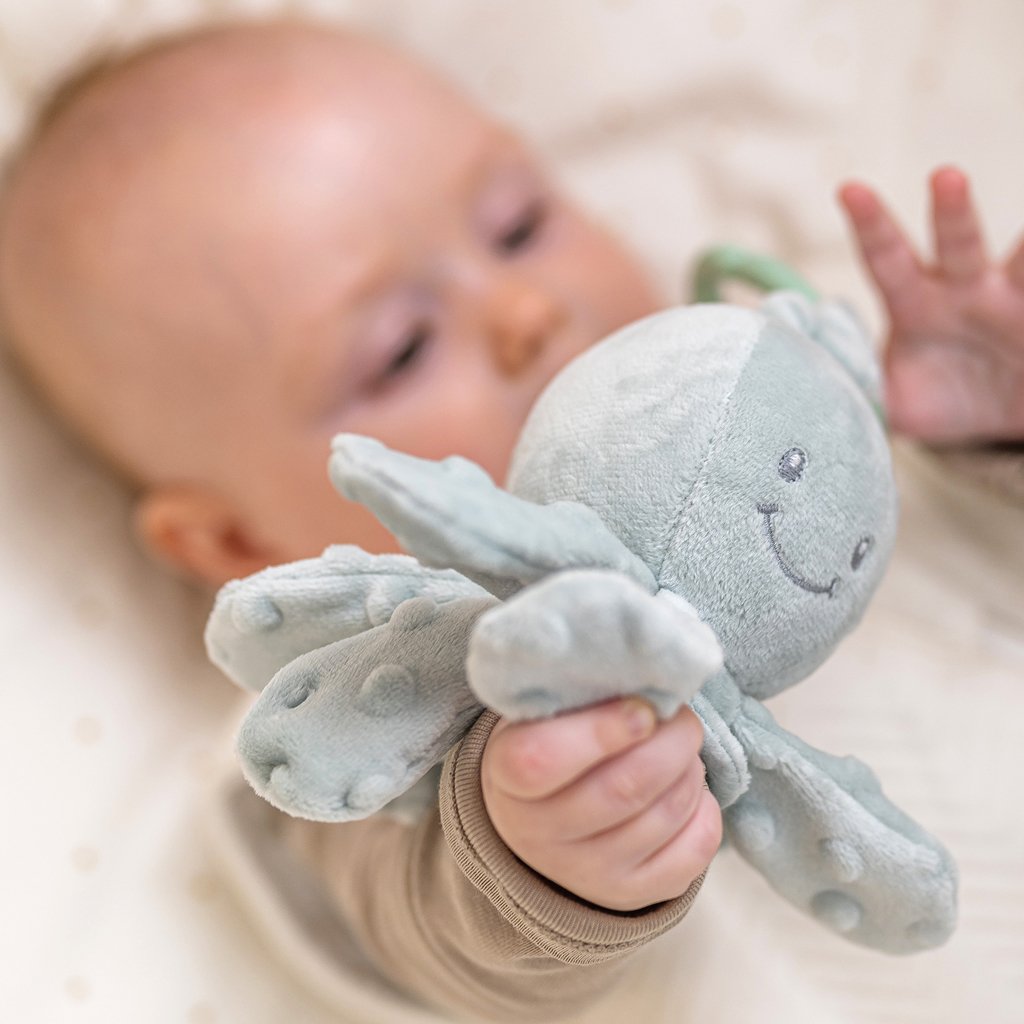 Roztomilá chobotnička, so svojou krásnou srsťou, si podmaňuje srdcia novorodencov po celom svete. Rozkošná chobotnička ponúka nespočetné možnosti uchopenia a podporuje tak rozvoj motoriky. Navyše je tu integrovaná vibračná funkcia, ktorá hravou formou vycibrí hmat a sluchové schopnosti dieťaťa a poskytne dostatok zábavy.