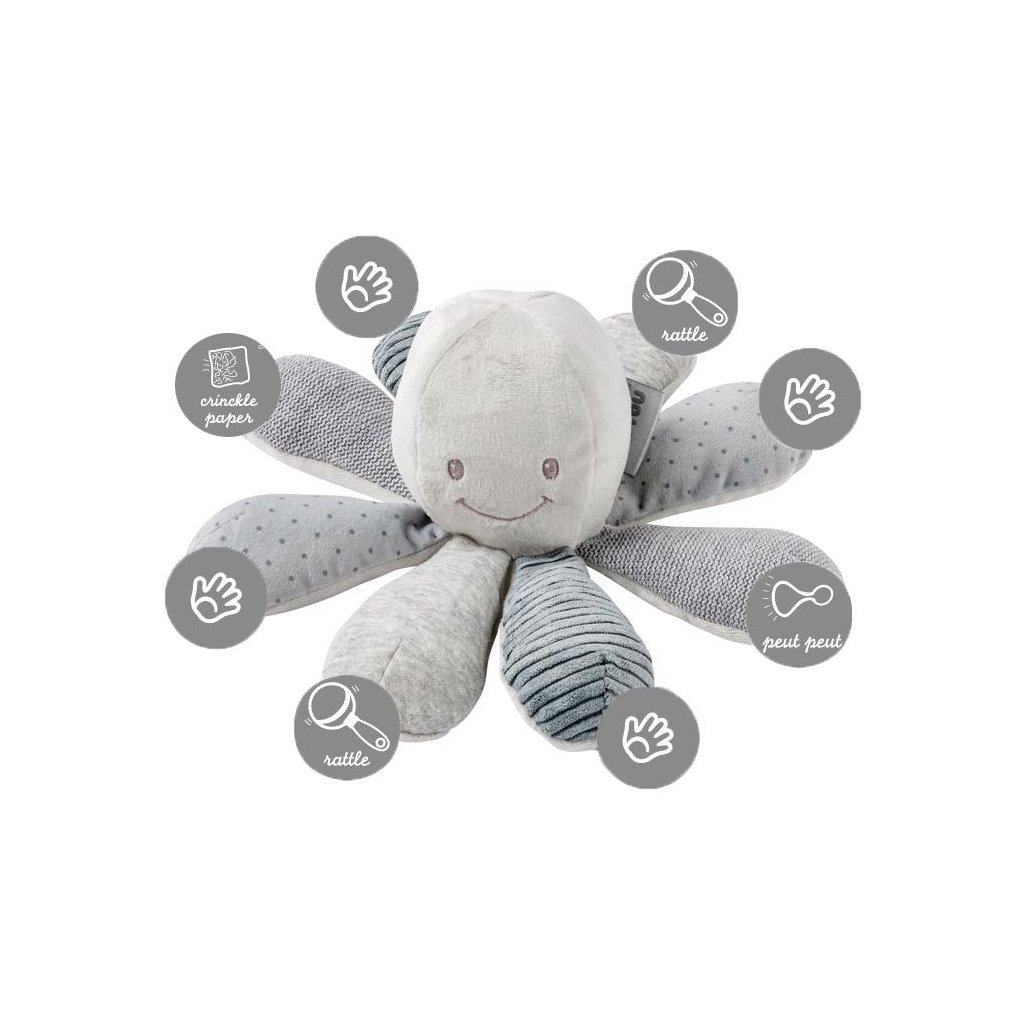 NATTOU Hračka chobotnička edukačná 8 aktivít Lapidou grey