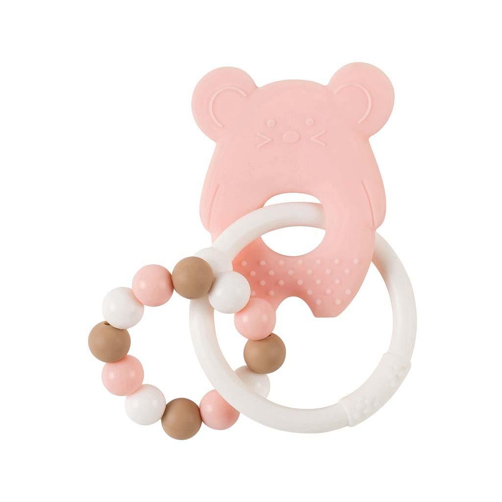 Silikónová hryzačka zložená z troch rôznych častí zmierni bolesť pri prerezávaní sa prvých zúbkov. Môže byť použitá aj ako jednoduchá hrkálka a tiež vďaka svojmu tvaru a dizajnu na rozvoj motorických zručností malých ručičiek. Krásny decentný dizajn.Vhodné od 4 mesiacov.