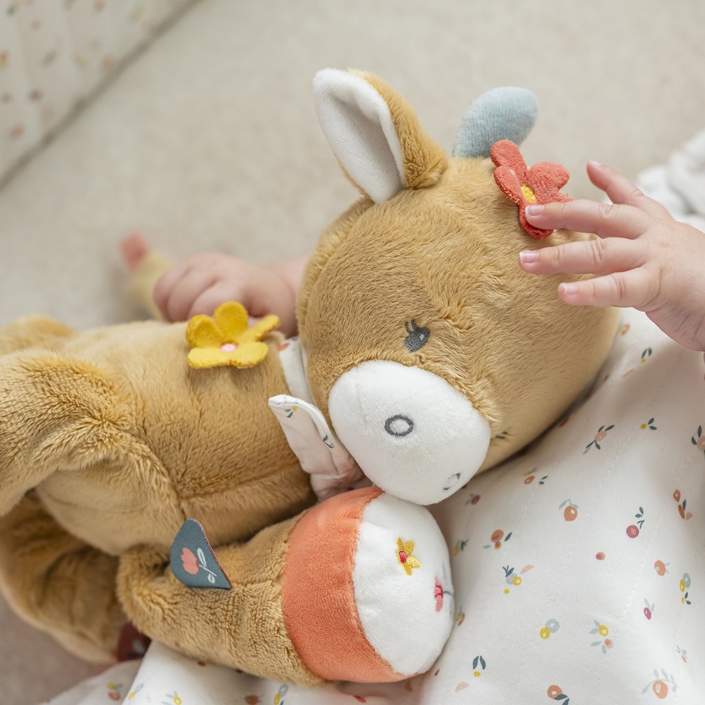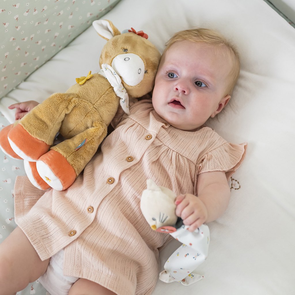 Krásna pusinka vyrobená z polyesteru a bavlny, ktorá je príjemná a stimuluje hmat dieťaťa.