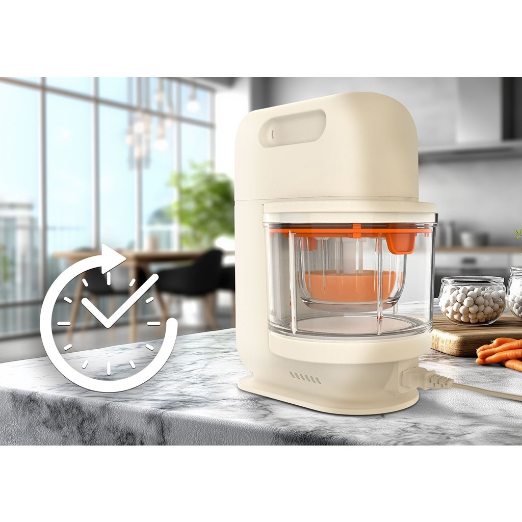 Dôležité: Používajte len podľa priloženého návodu. Zariadenie je určené na prípravu detských jedál pod dohľadom dospelých. Uchovávajte mimo dosahu detí. Nepoužívajte v blízkosti vody ani zdrojov tepla. Všetky časti prístroja sú vyrobené z bezpečných materiálov (BPA free) a spĺňajú európske normy.