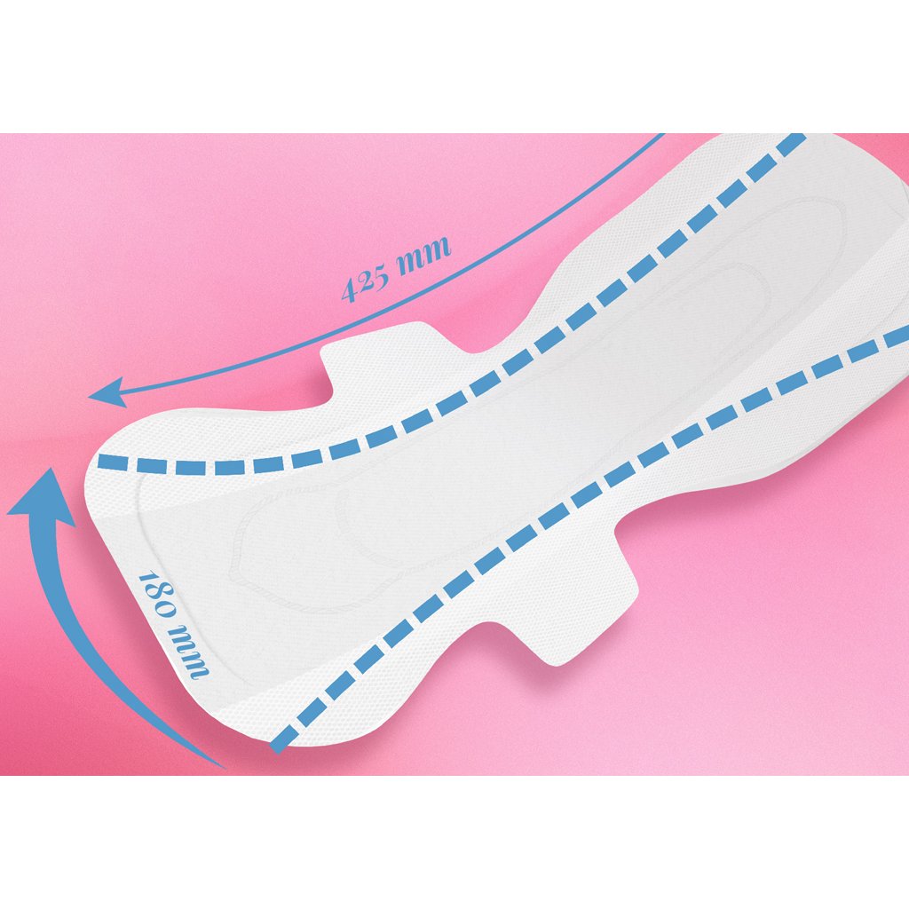 - Veľká veľkosť (425 mm): Telo si zaslúži najlepšiu starostlivosť počas všetkých zmien, ktorými prechádza. Vložky Neno Soffio s dĺžkou 425 mm poskytujú maximálnu ochranu aj v tých najnáročnejších chvíľach. Či už ležíte, chodíte alebo spíte, budete sa cítiť maximálne bezpečne.
