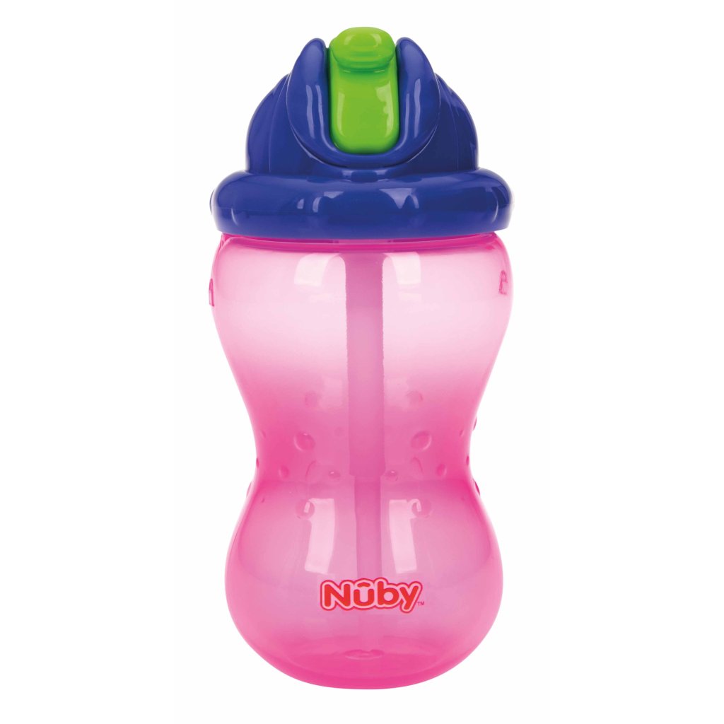 NUBY Hrnček netečúci se sklápacou slamkou a 360ml, 12 m+ červený