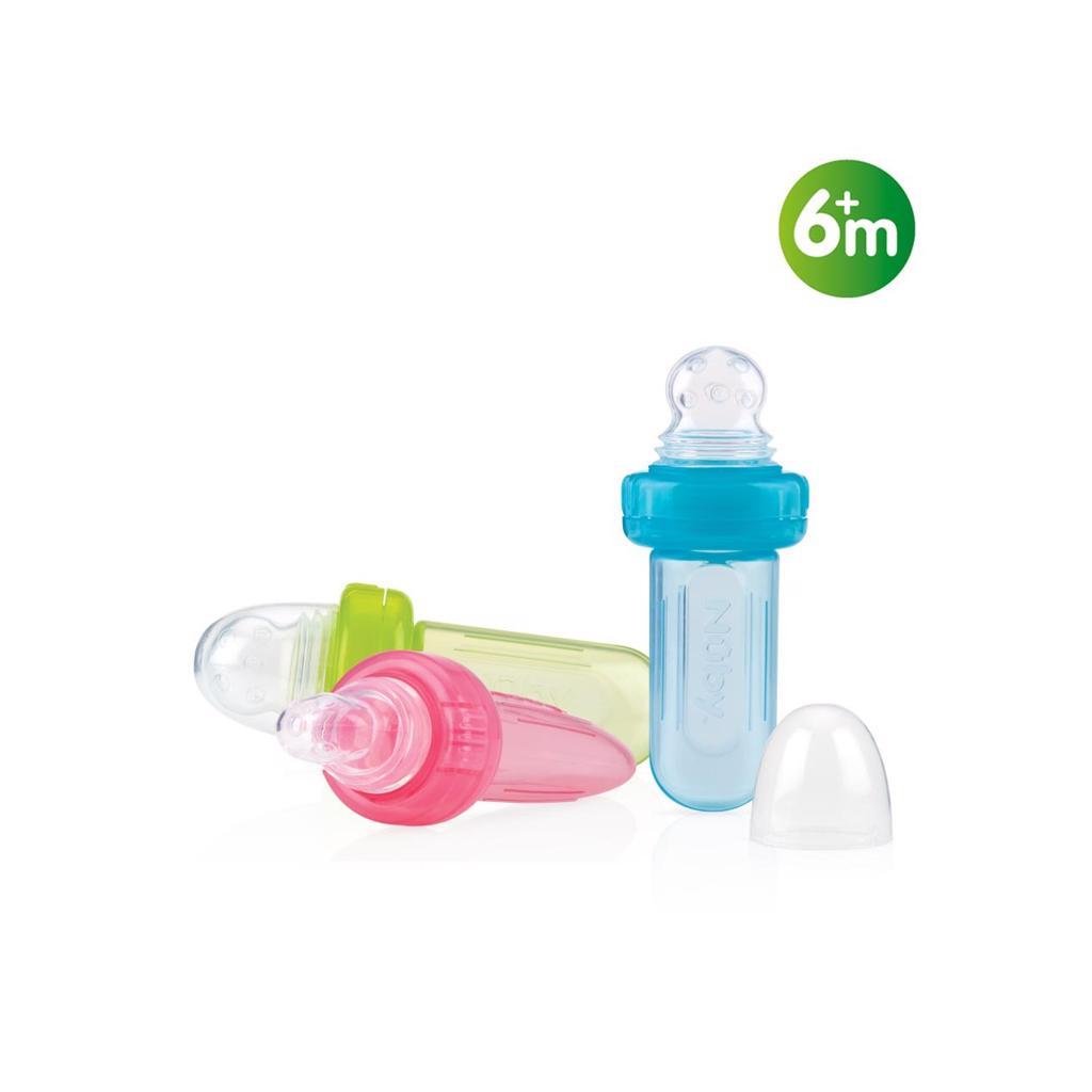 NUBY Kŕmitko silikónové Easy squeezy feeder 6 m+, modrá