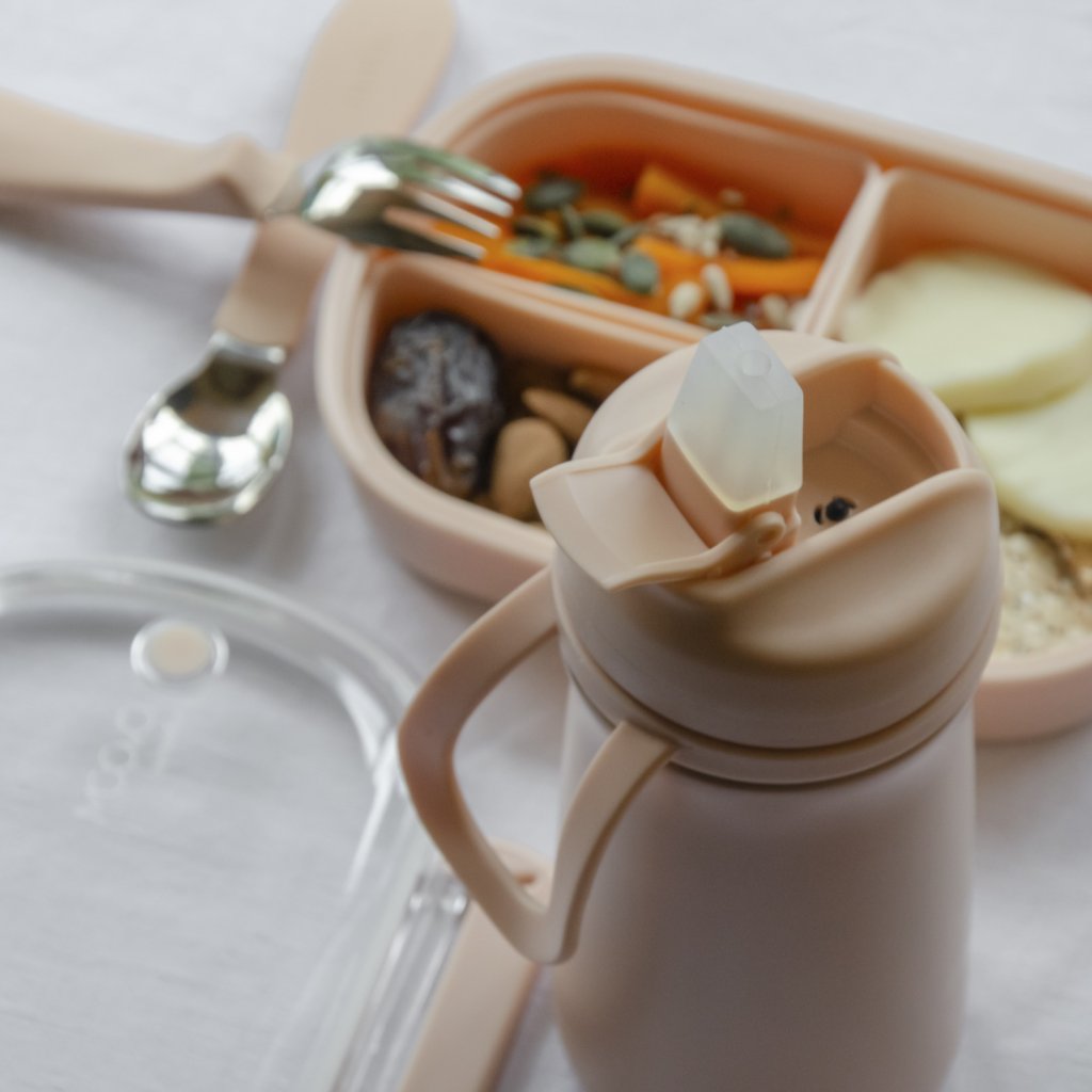 Termoska z nerezovej ocele s náustkom, vďaka tomu je vhodná pre deti už od 6 mesiacov. Udrží svoj obsah studený až 24 hodín alebo teplý až 12 hodín. Tesniace viečko udrží tekutinu v termoske a praktické pútko uľahčí prenášanie a manipuláciu s termoskou.