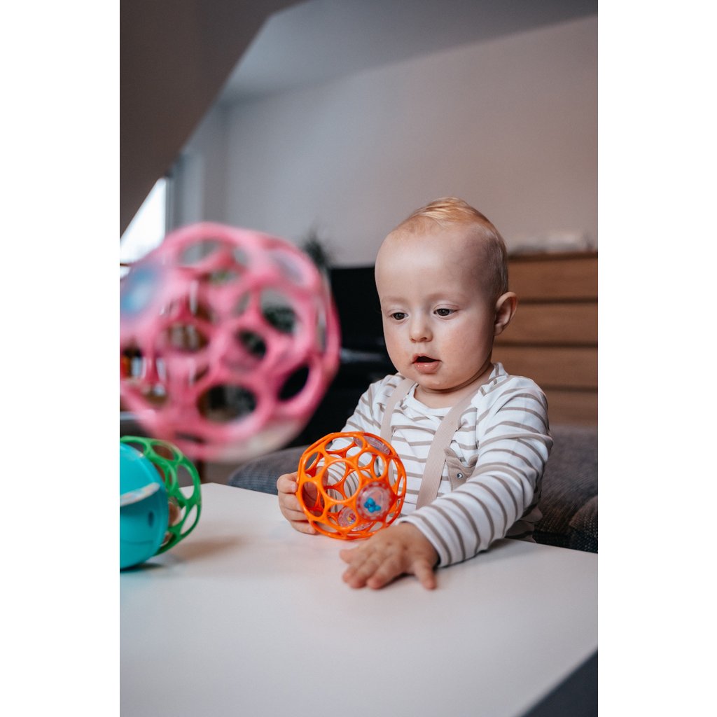 Malé bábätká ešte nemajú veľkú silu v ručičkách, ale zároveň majú silný stisk, takže väčšinu hračiek nie sú schopné uchopiť, alebo sú pre ne príliš ťažké a nevedia ich udržať, čo ich frustruje. A práve preto je Oball Rattle najideálnejšou prvou hračkou vášho bábätka – váži len 41 g a vďaka unikátnemu dizajnu Oball™ je ľahko uchopiteľná pre každé bábätko. Čo dodáva bábätku silu, podporuje a rozvíja motorické a senzorické schopnosti a dodáva mu odvahu objavovať svet.