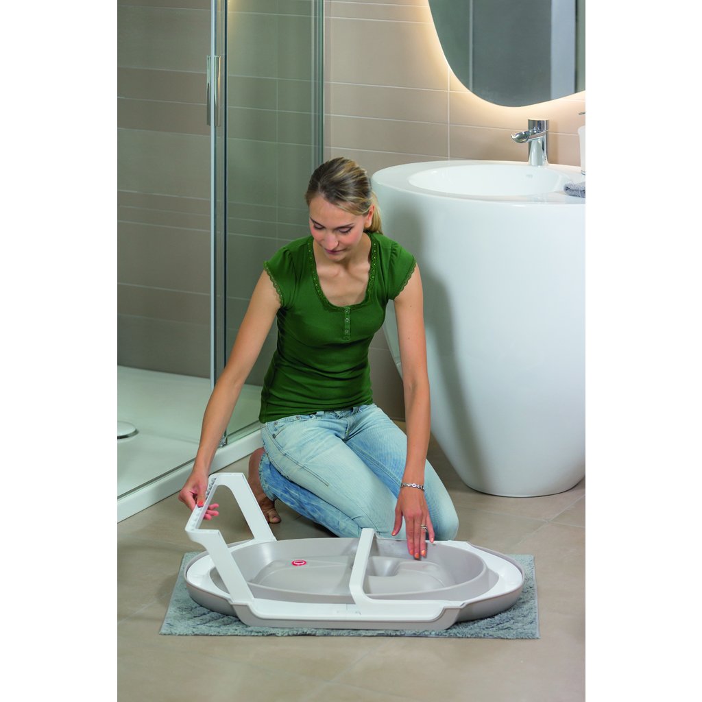 - Vanička je vybavená záchytným bodom medzi nohami dieťatka, ktorý zabraňuje jeho skĺznutiu. Aj vďaka tejto funkcii môže byť vaňa použitá v dvoch sedacích pozíciách, ktoré dieťaťu umožňujú udržiavať dobrú polohu pri dospievaní (0/6 mesiacov a 6/12 mesiacov) a môžu sa pohybovať nohami a rukami.