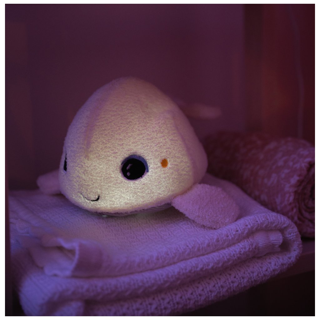 Veľryba BELUGA môže svietiť v režime bieleho nočného svetla (3 intenzity) alebo v režime dúhy (automatická zmena farby), aby vytvorila v miestnosti upokojujúcu atmosféru.