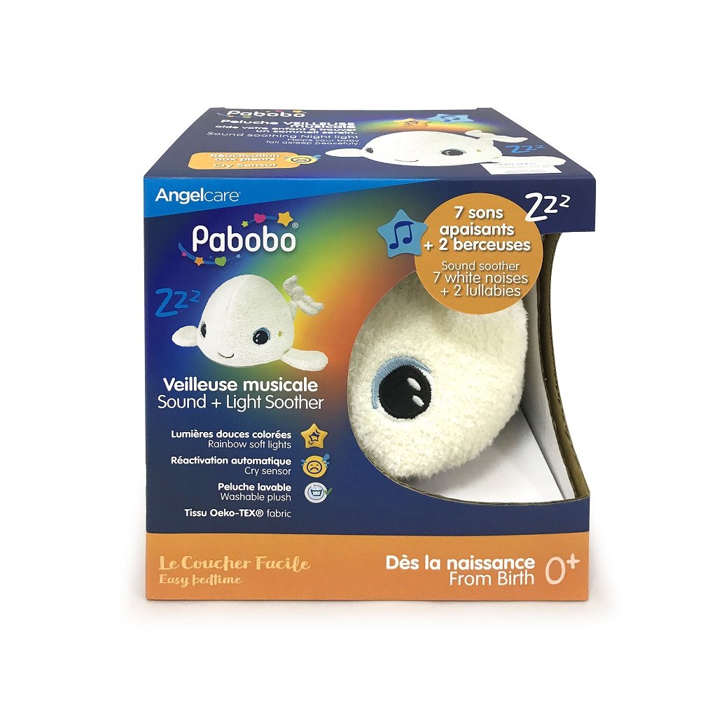 PABOBO Svietiaci plyšový maznáčik BELUGA veľryba s melódiami, bielym šumom a senzorom plaču