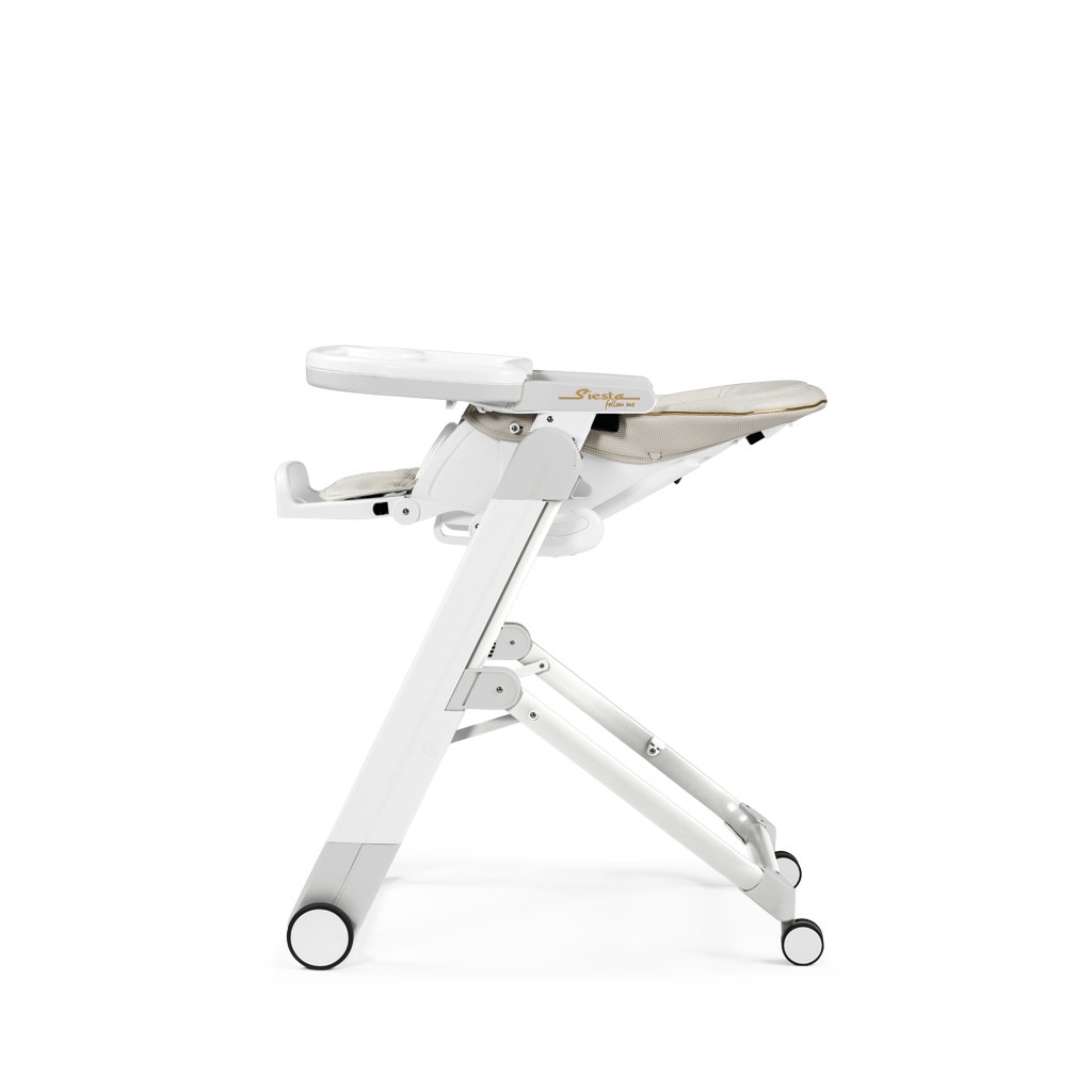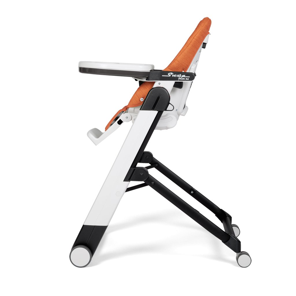 Vďaka 4 kolieskam a dômyselnému brzdovému systému STOP&GO je možné Siestu Follow Me ľahko presunúť napr. do inej miestnosti. Stolička sa ľahko rozkladá a skladá, po zložení je kompaktná a stojí úplne samostatne. Výškovo je nastaviteľná do 9 rôznych polôh. Opierku chrbta je možné nastaviť do 5 polôh a opierku nôh do 3 polôh. Predný dvojitý pultík je polohovateľný a odnímateľný. Naspodku je vybavený bezpečnostnou prepážkou, ktorá zabraňuje vykĺznutiu dieťaťa a jeho hornú časť s držiakom na fľašu je možné umývať v umývačke riadu