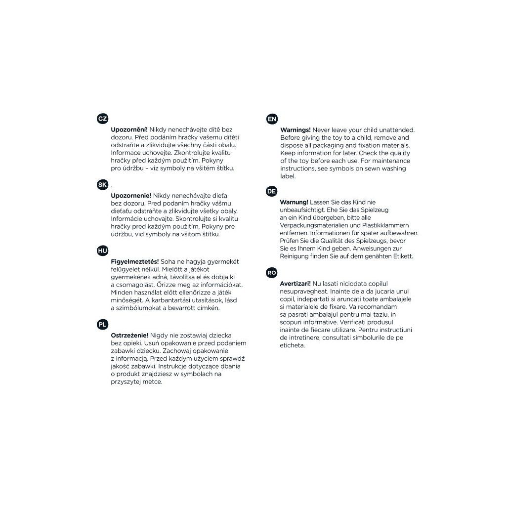 Nikdy nenechávajte dieťa bez dozoru. Pred podaním hračky vášmu dieťaťu odstráňte a zlikvidujte všetky obaly. Informácie uschovajte. Skontrolujte kvalitu hračky pre každým použitím.