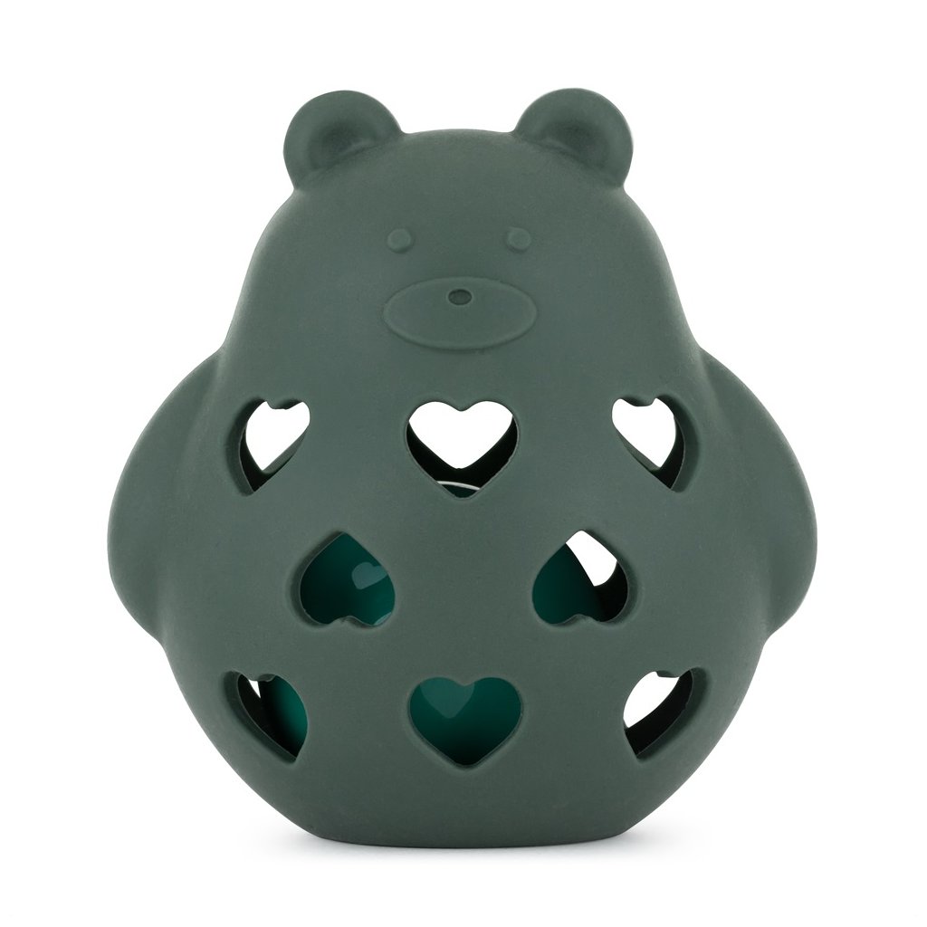 PETITE&MARS Hračka silikónová s hrkálkou Bear Basil Misty Green 0m+
