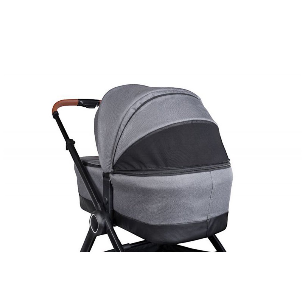 Priestranná pohodlná vanička má odnímateľný vnútorný poťah, ktorý je možné prať. Je s odvetranou strieškou, vďaka ktorej bude bábätku v kočíku príjemne aj v teplých letných mesiacoch. Naopak v prípade nepriaznivého počasia je možné chránič vaničky vypnúť hore pomocou cvokov a Vaše dieťatko môže spokojne a nerušene spinkať.