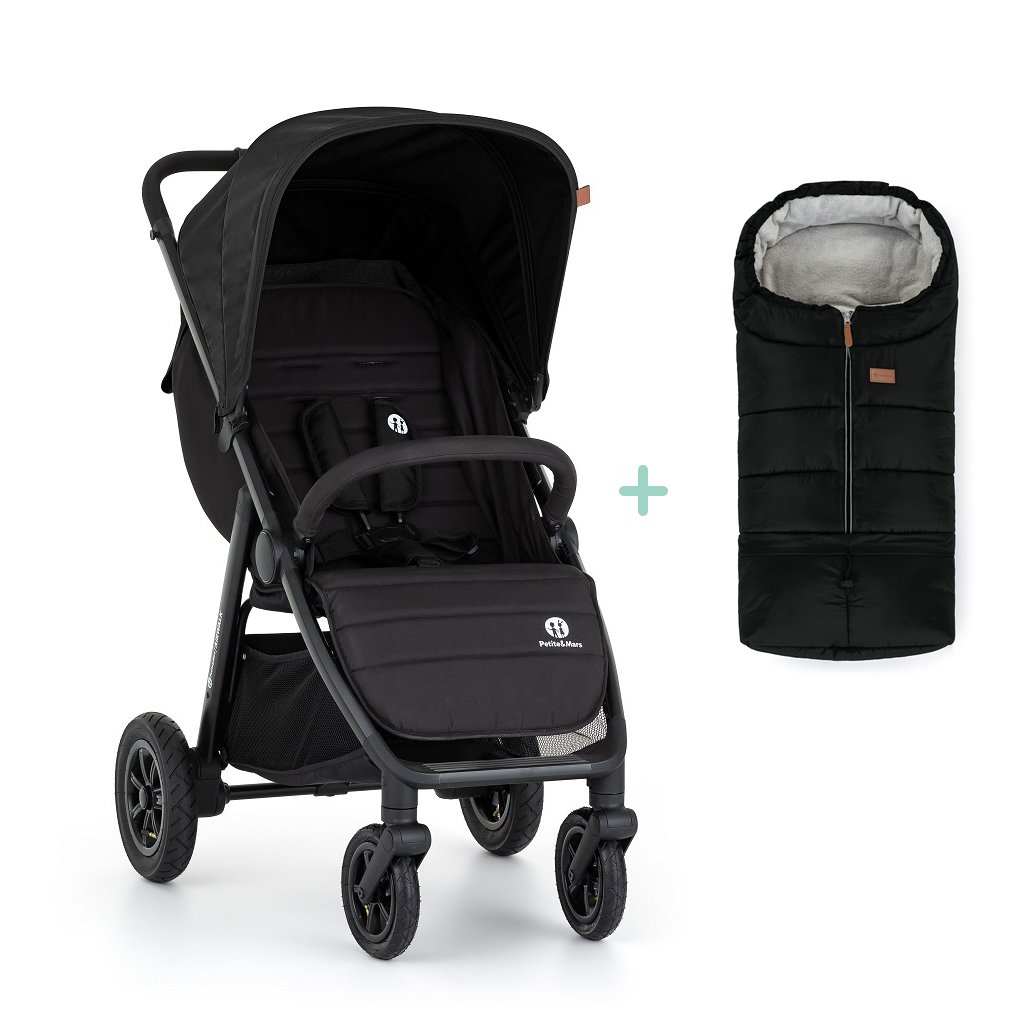 PETITE&MARS Kočík športový Airwalk2 Perfect Black + PETITE&MARS fusak Jibot