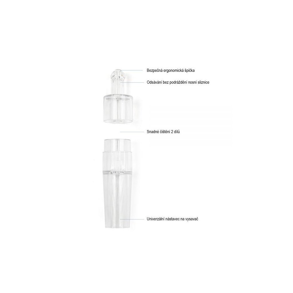 Bezpečná odsávačka nosových hlienov bábätka, ktorú možno pripojiť na domáci vysávač. Šetrná pomôcka pre uľahčenie dýchania.
