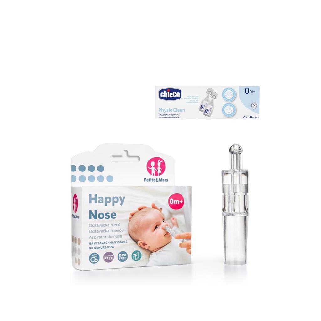 PETITE&MARS Odsávačka nosných hlienov Happy Nose + Chicco fyz. roztok do nosa, 10 ampuliek