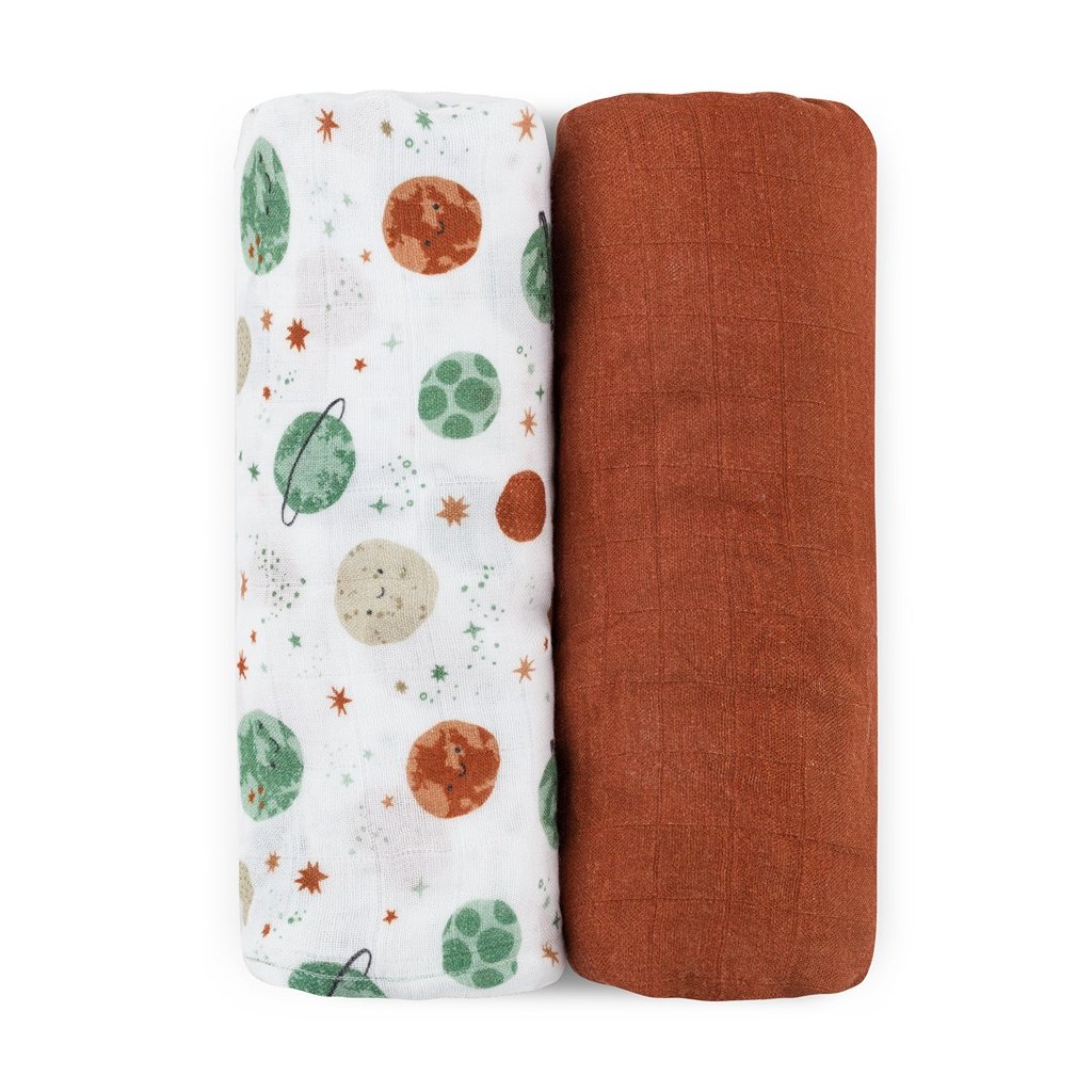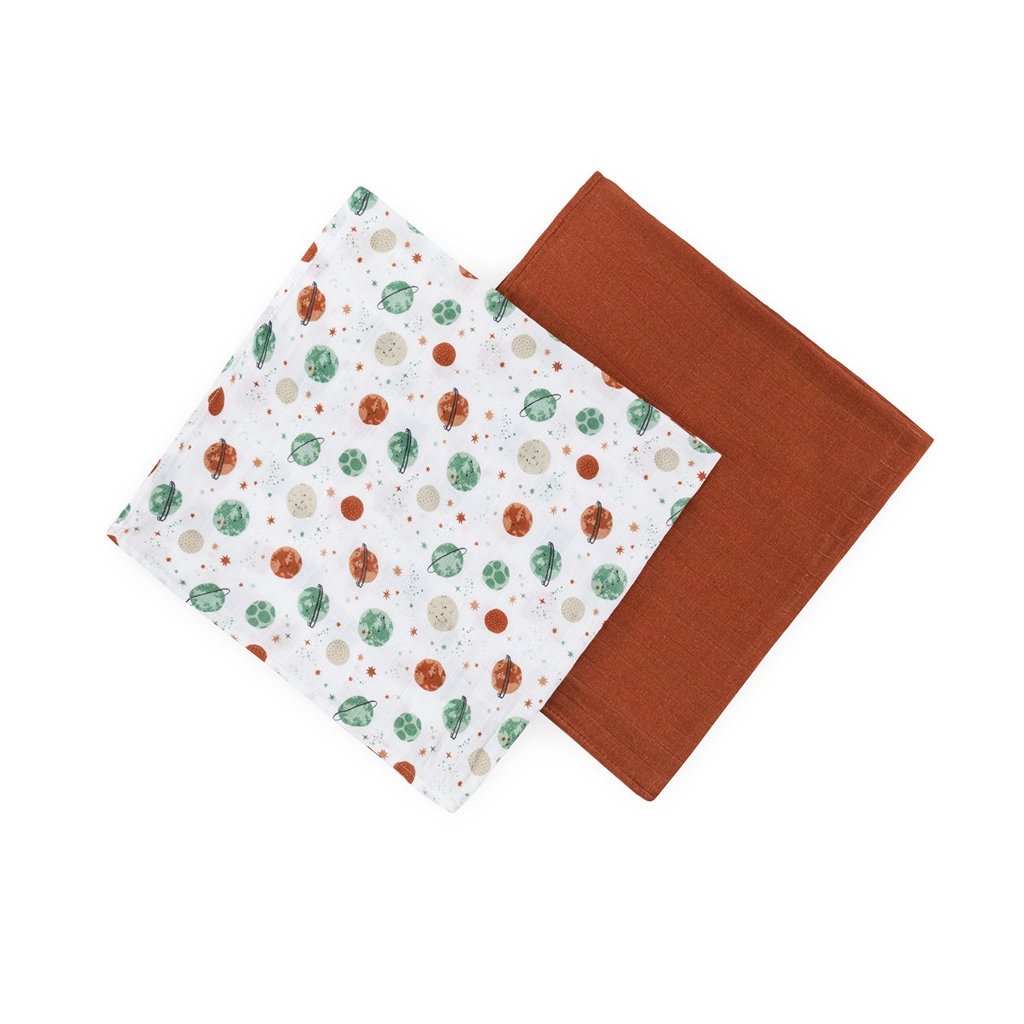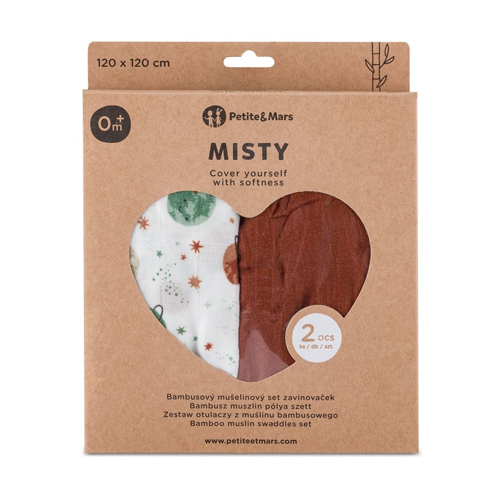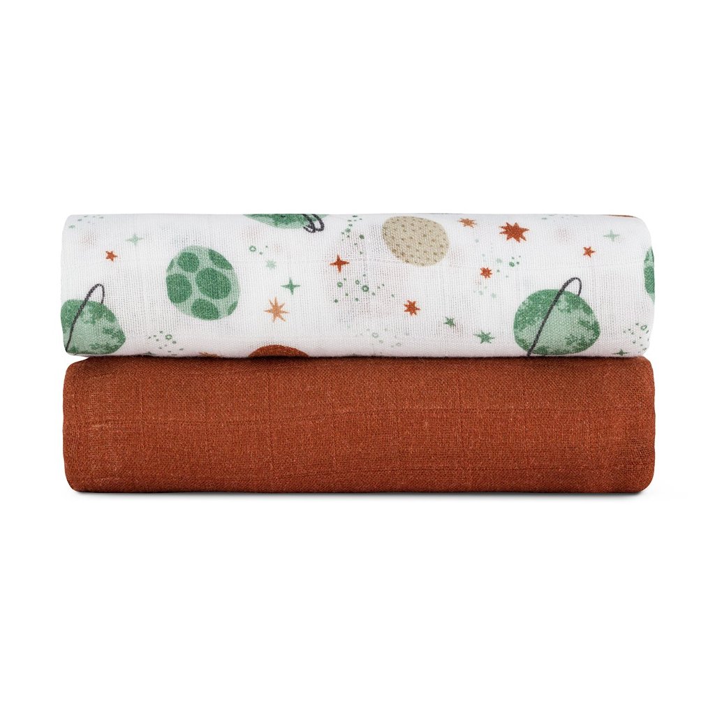 PETITE&MARS Prikrývka bambusová mušelínová 2ks Misty Celestial Planets 120 x 120 cm