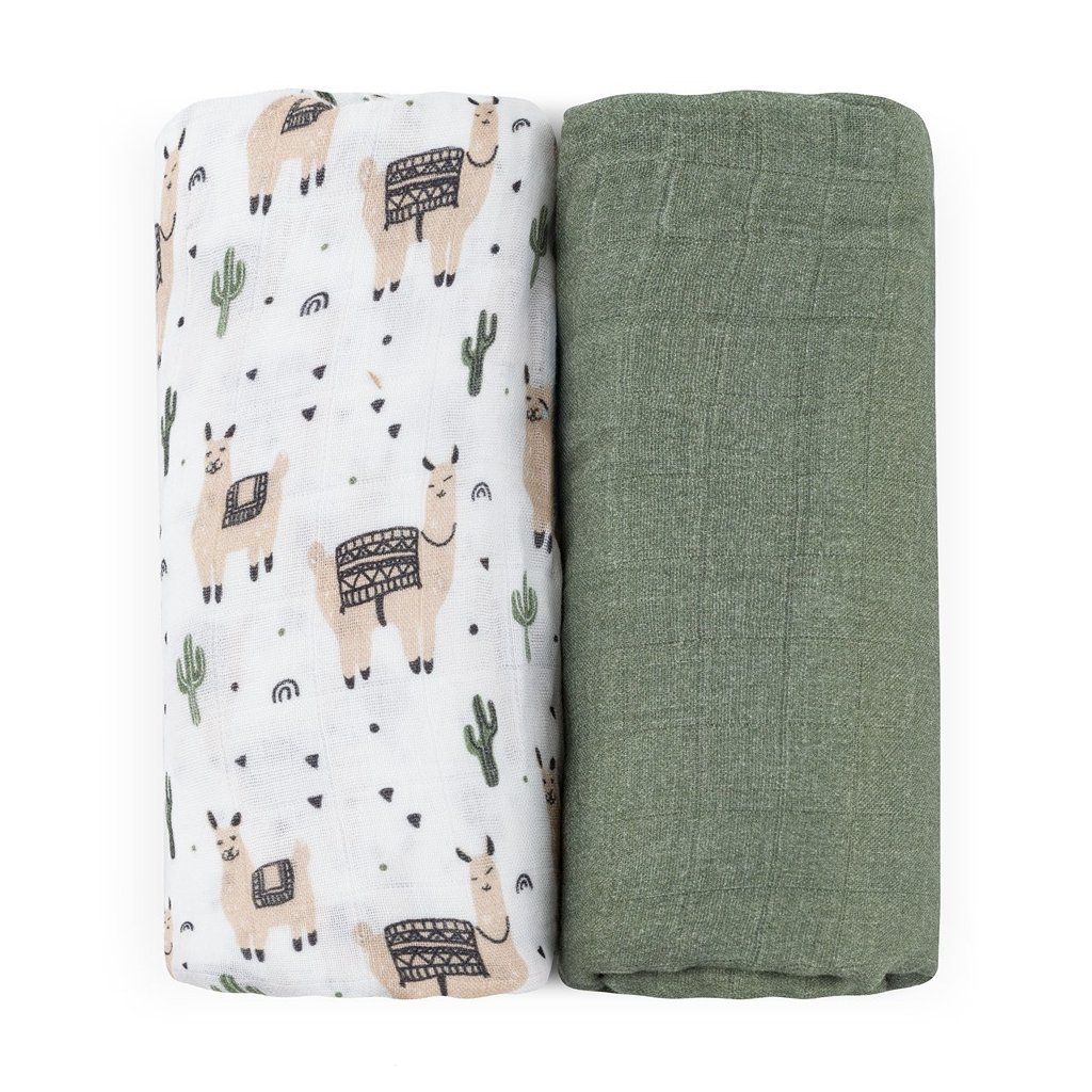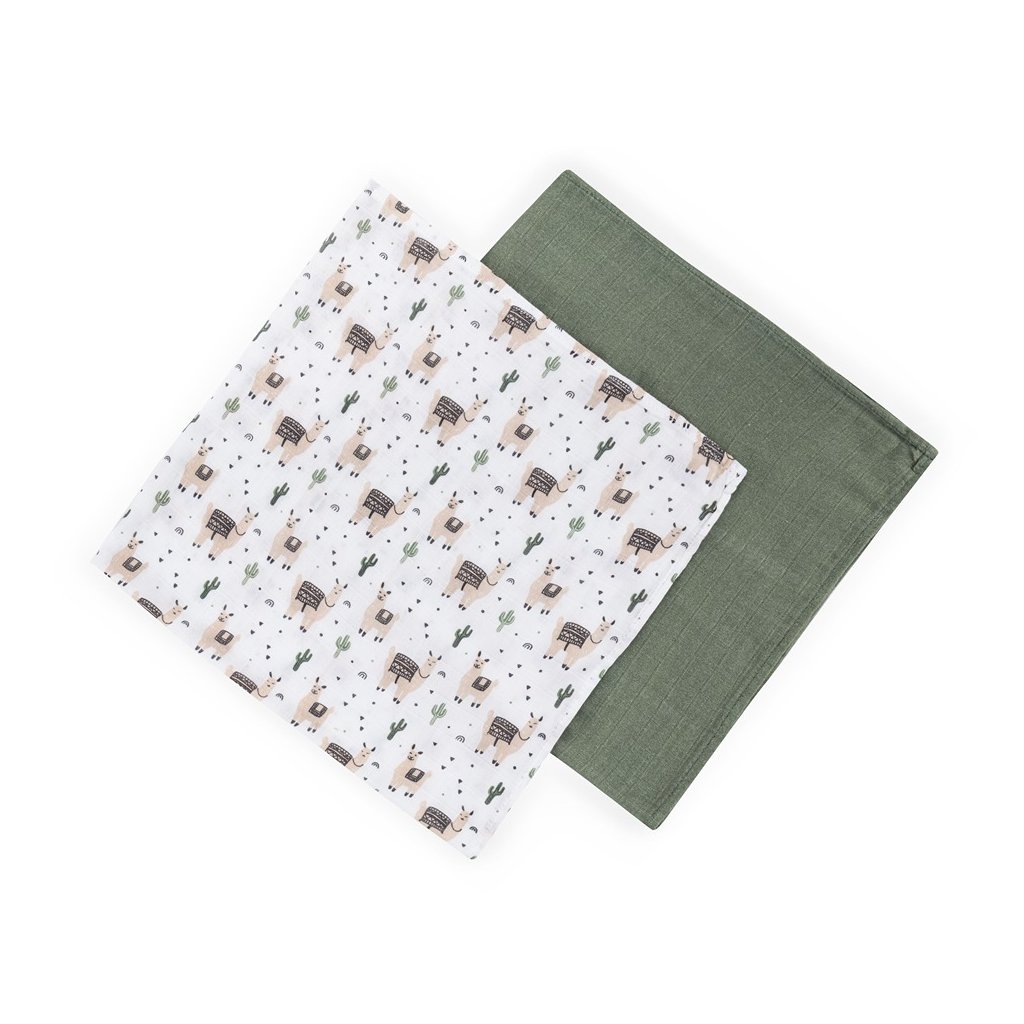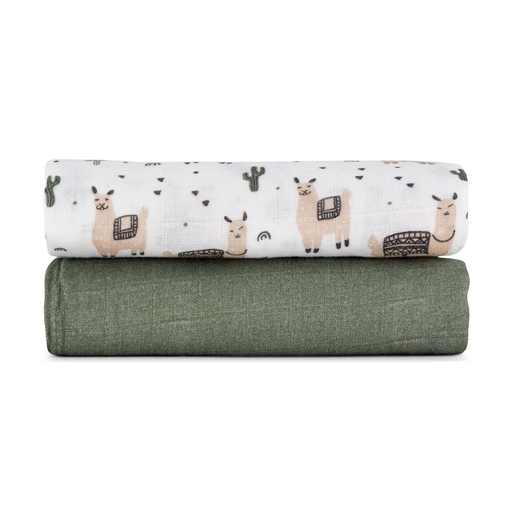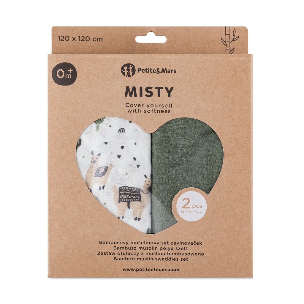 PETITE&MARS Prikrývka bambusová mušelínová 2ks Misty Llama Vibes 120 x 120 cm