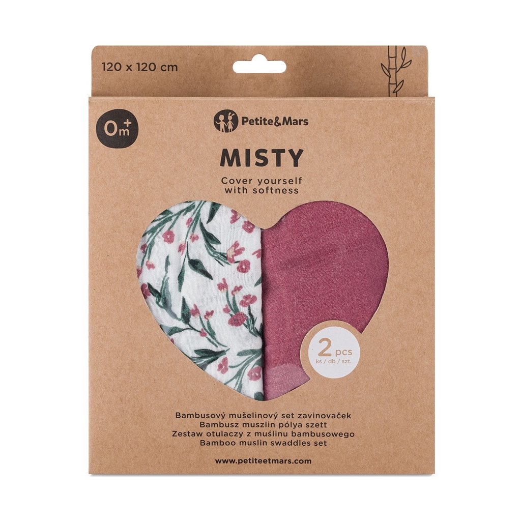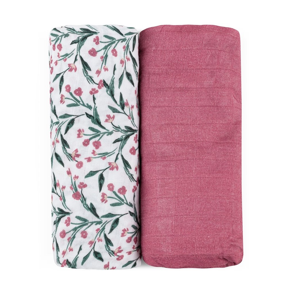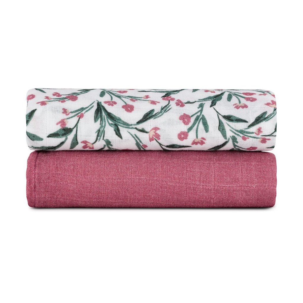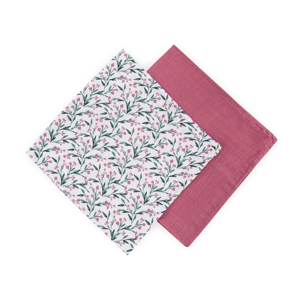 PETITE&MARS Prikrývka bambusová mušelínová 2ks Misty Pink Meadow 120 x 120 cm