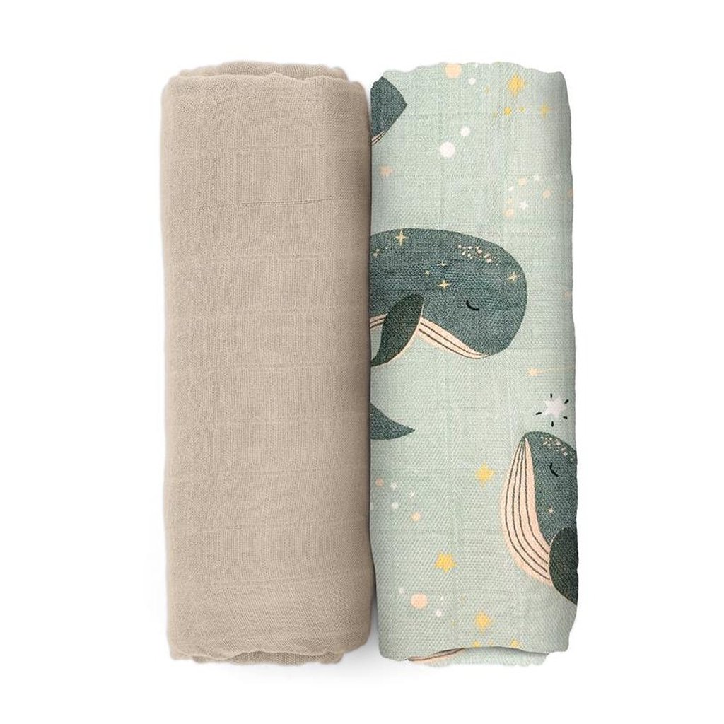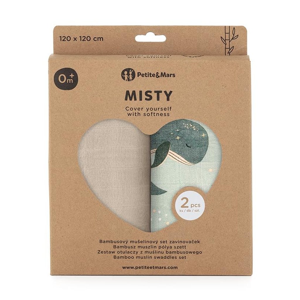 PETITE&MARS Prikrývka bambusová mušelínová 2ks Misty Whale Song 120 x 120 cm