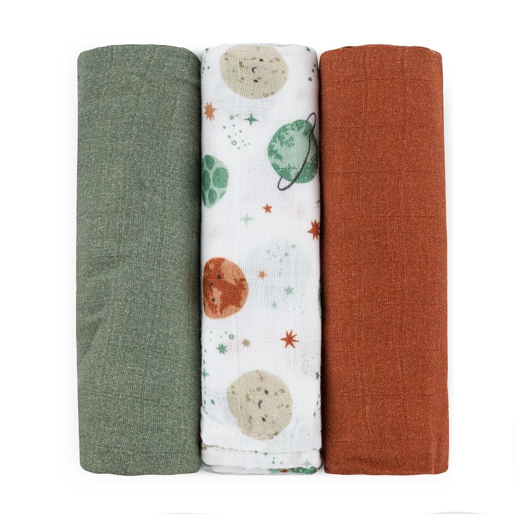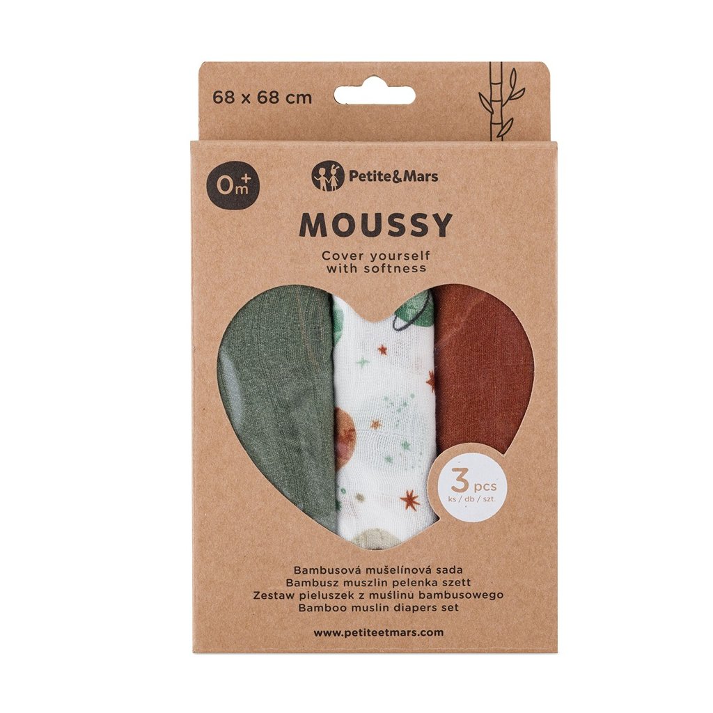 PETITE & MARS Sada plienok bambusová mušelínová 3ks Moussy Celestial Planets 68 x 68 cm
