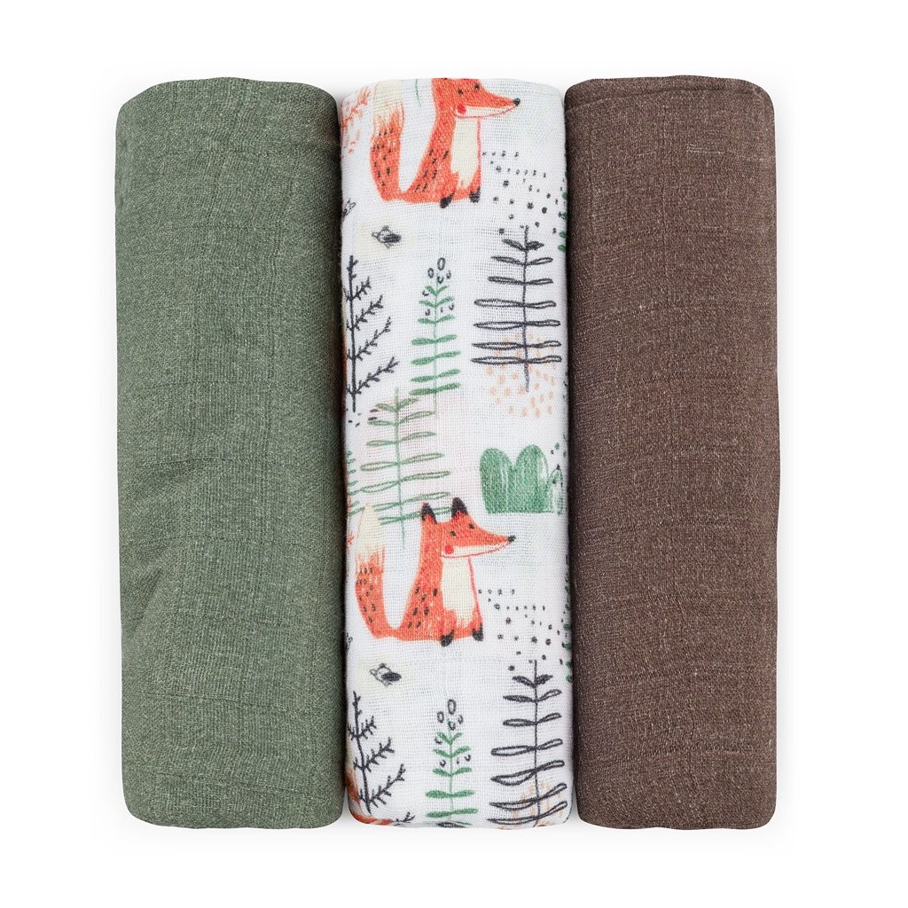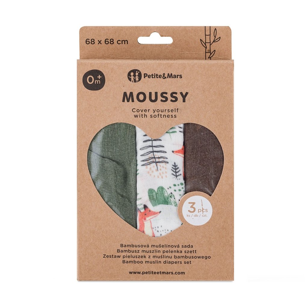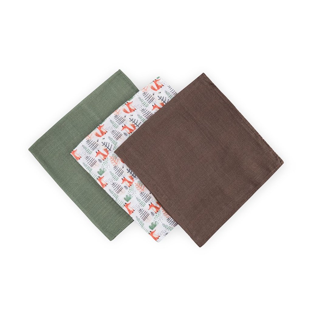 PETITE & MARS Sada plienok bambusová mušelínová 3ks Moussy Forest Fox 68 x 68 cm