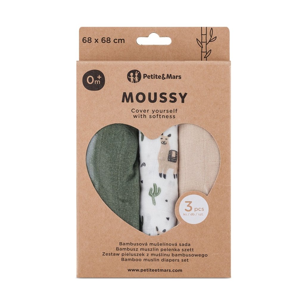 PETITE & MARS Sada plienok bambusová mušelínová 3ks Moussy Llama Vibes 68 x 68 cm
