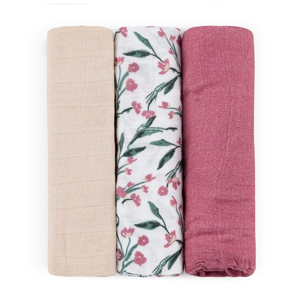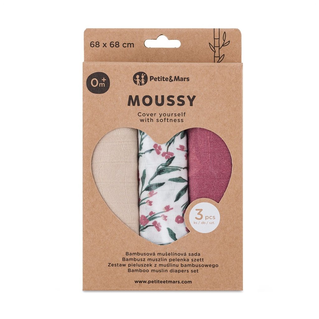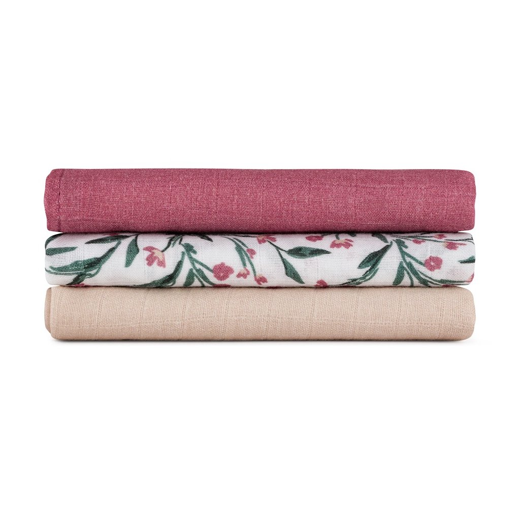 PETITE & MARS Sada plienok bambusová mušelínová 3ks Moussy Pink Meadow 68 x 68 cm