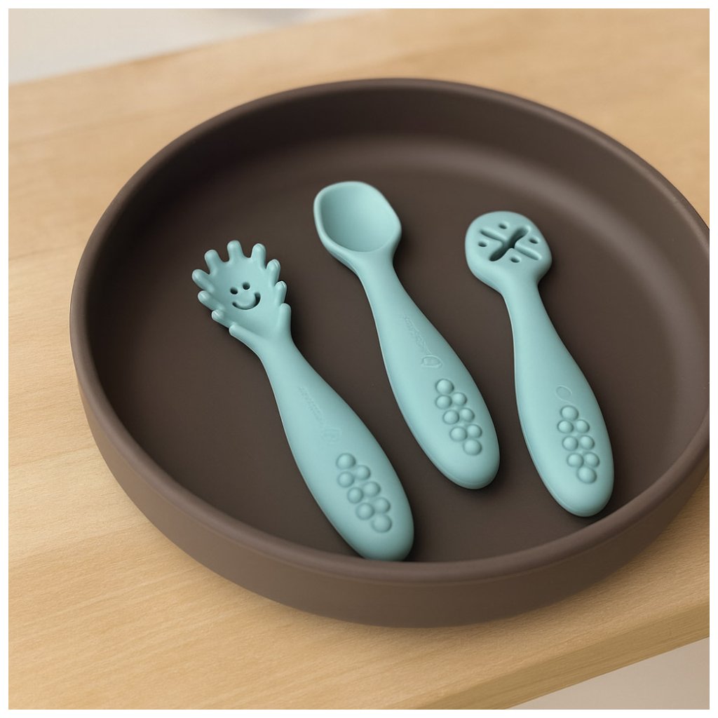 Set je vyrobený z potravinárskeho silikónu bez obsahu BPA. Vďaka tomu môže vaše dieťa s príborom jesť teplé, studené a rôzne konzistencie jedál. Vďaka pružnému silikónu sú lyžičky ideálne pre citlivé ďasná malého dieťaťa. Lyžičky sú vhodné pre deti od 6 mesiacov, ktoré sa zoznamujú s prvými príkrmami, a pre tie, ktoré sa už úspešne učia jesť samy. Zaoblené tvary a malé rozmery uľahčujú dieťatku ich uchopenie a papanie.