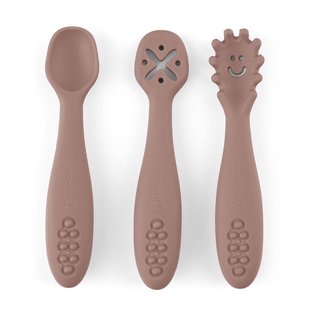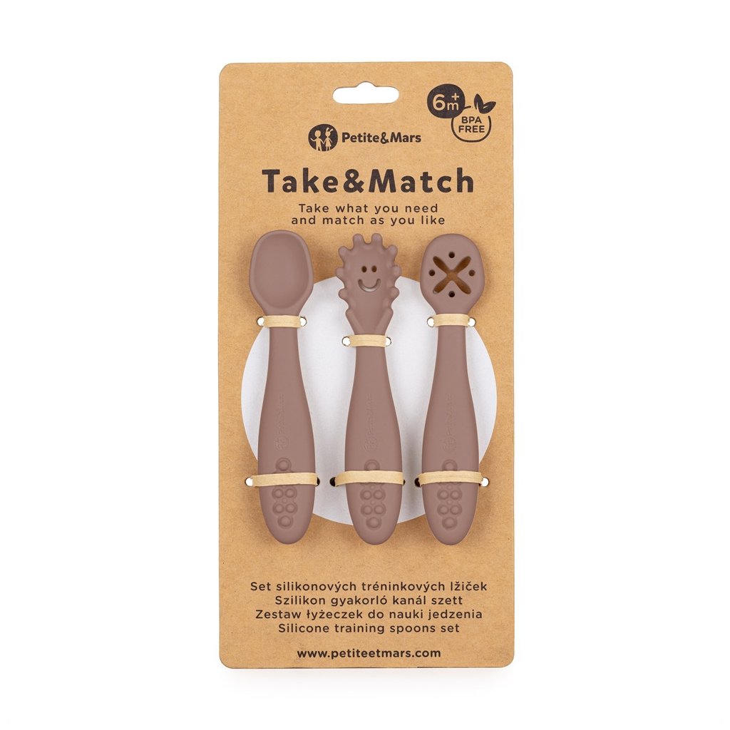 PETITE&MARS Set 3 ks silikónových tréningových lyžičiek Take&Match Velvet Latte 6m+