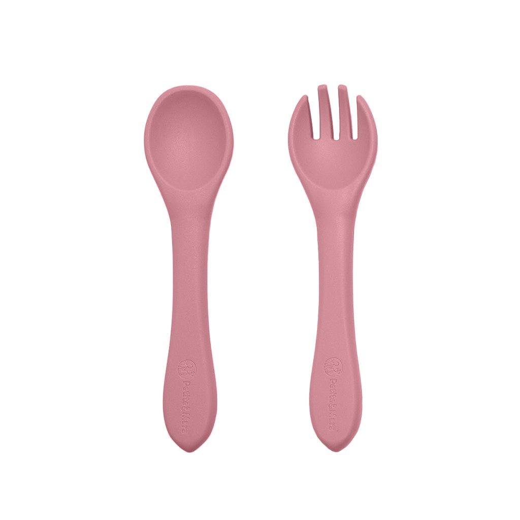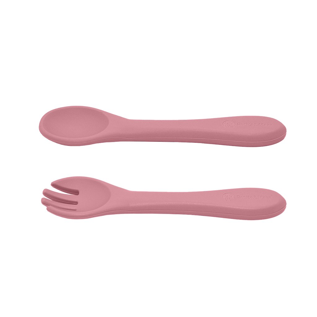 PETITE&MARS Set jedálenský silikónový TAKE&MATCH 2 ks miska + príbor Dusty Rose 6m+