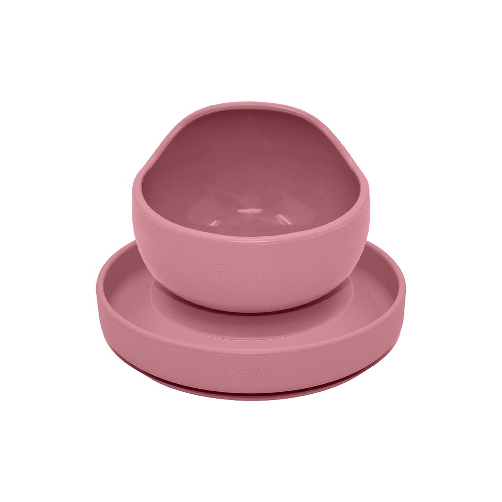 PETITE&MARS Set jedálenský silikónový TAKE&MATCH 2 ks tanier + miska Dusty Pink 6m+