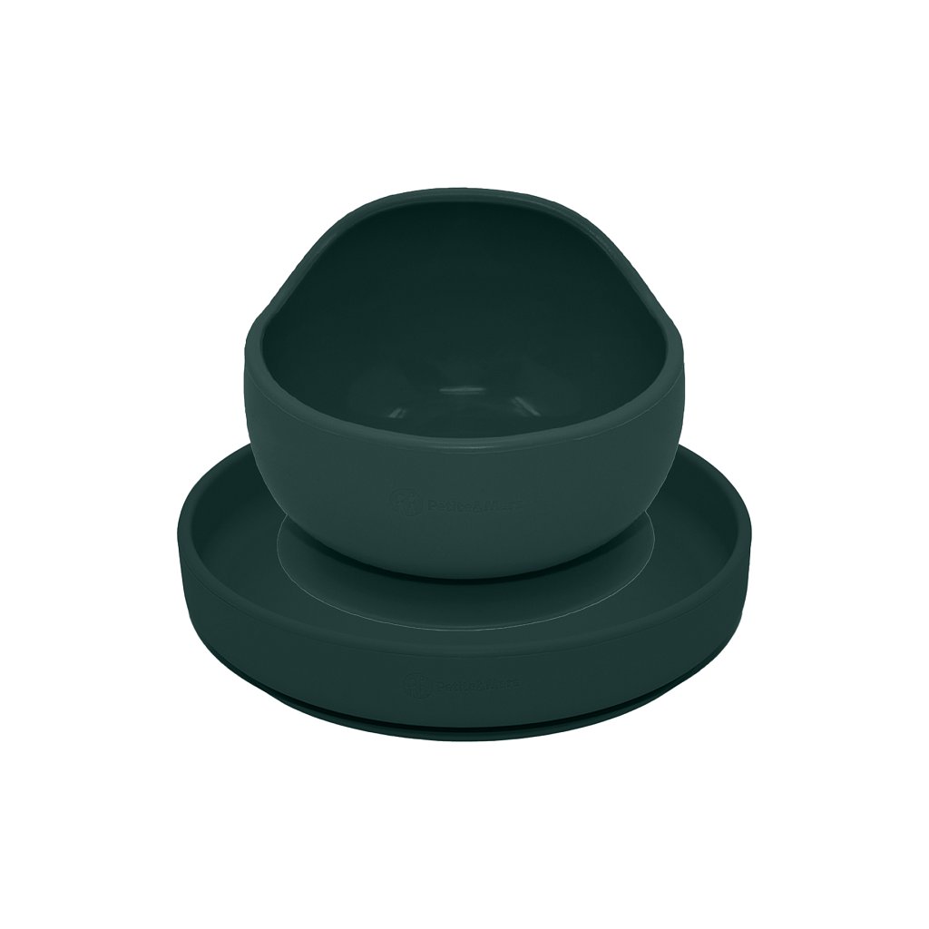 PETITE&MARS Set jedálenský silikónový TAKE&MATCH 2 ks tanier + miska Misty Green 6m+