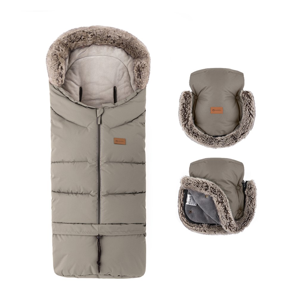 PETITE&MARS Set zimný fusak Arctic 4v1 + rukavice na kočík Furry Mocha Mousse