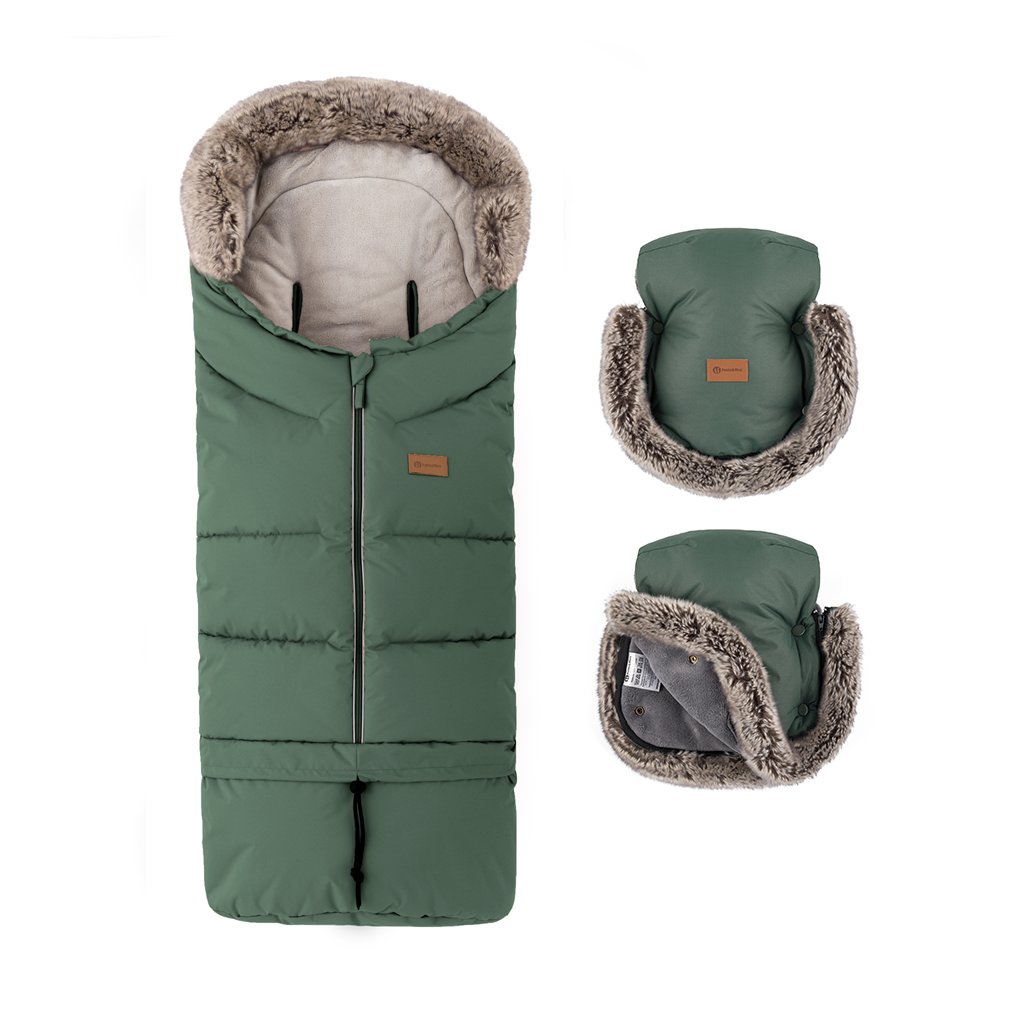 PETITE&MARS Set zimný fusak Arctic 4v1 + rukavice na kočík Furry Veritable Khaki