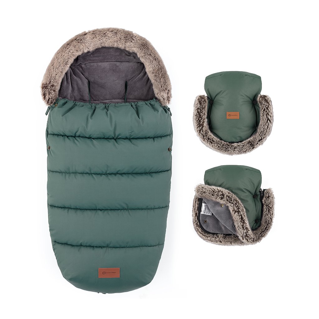 PETITE&MARS Set zimný fusak Comfy 4v1 + rukavice na kočík Furry Veritable Khaki