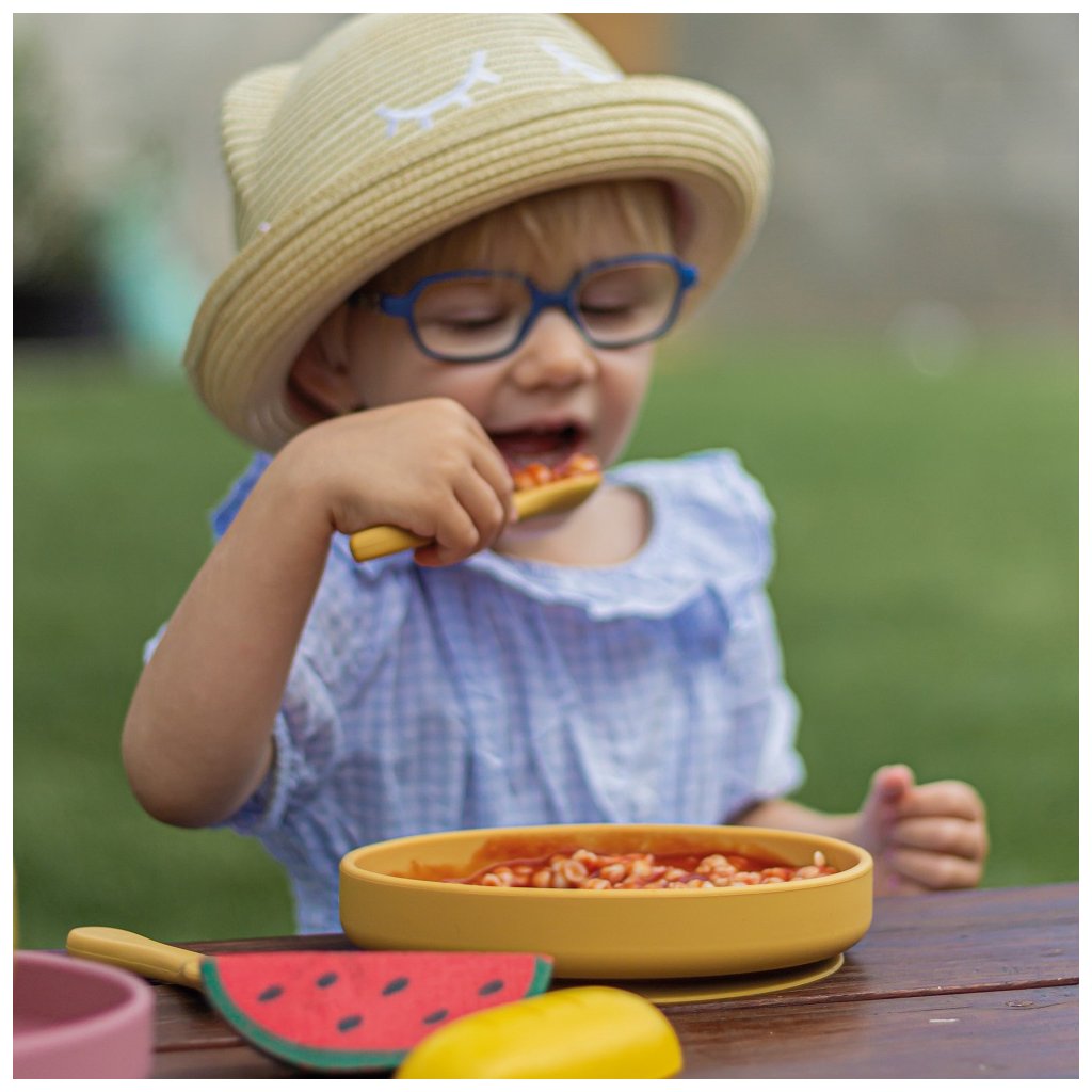 - ergonomický dizajn, tvarovaný s ohľadom na najmenších: zaoblené tvary uľahčujú jedenie