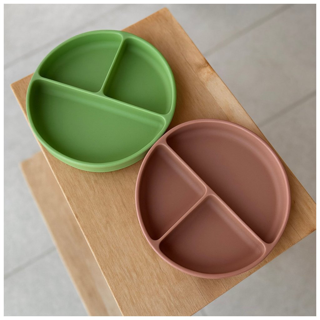 PETITE&MARS Tanierik silikónový deliaci okrúhly Take&Match Bitter Cocoa 6m+