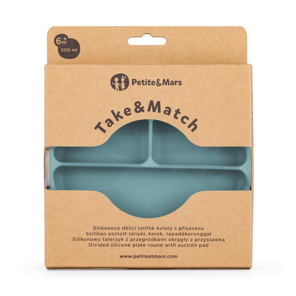 PETITE&MARS Tanierik silikónový deliaci okrúhly Take&Match Frosted Sky 6m+