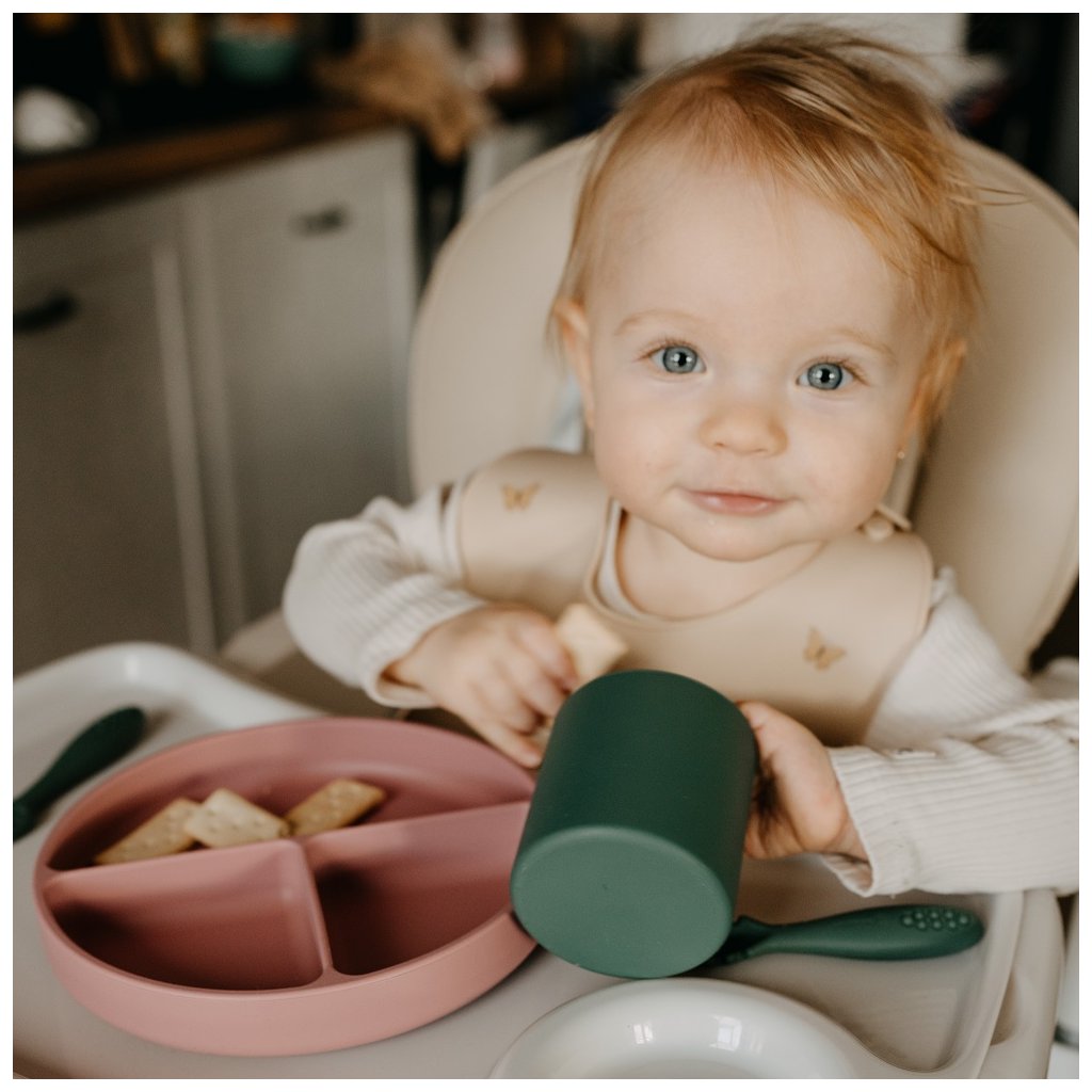 Praktický tanier je celý vyrobený z potravinárskeho silikónu bez obsahu BPA. Vďaka tomu ho možno bezpečne používať na všetky potraviny, teplé aj studené, a jedlo v ňom možno bez obáv ohrievať v mikrovlnnej rúre alebo uchovávať v chladničke. Vďaka odolnému a mäkkému silikónu sa nemusíte obávať, že sa tanier rozbije, odštiepi alebo zdeformuje - môžete ho nepoškodený používať dlhý čas. Je vhodný pre deti od 6 mesiacov, ktoré sa zoznamujú s rozšírenou stravou, a pre tie, ktoré sa už úspešne učia jesť samy.