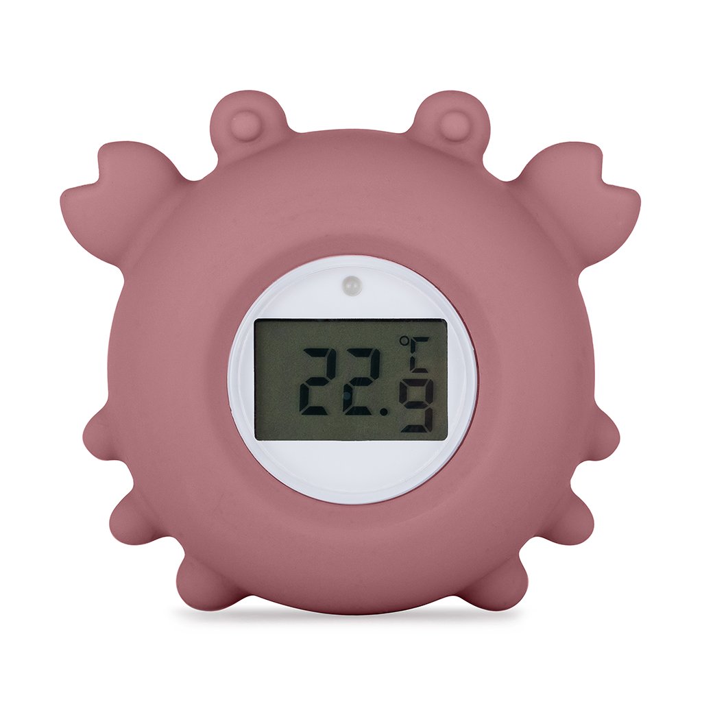 PETITE&MARS Teplomer silikónový digitálny do vody Crab Caleb Dusty Rose 0m+