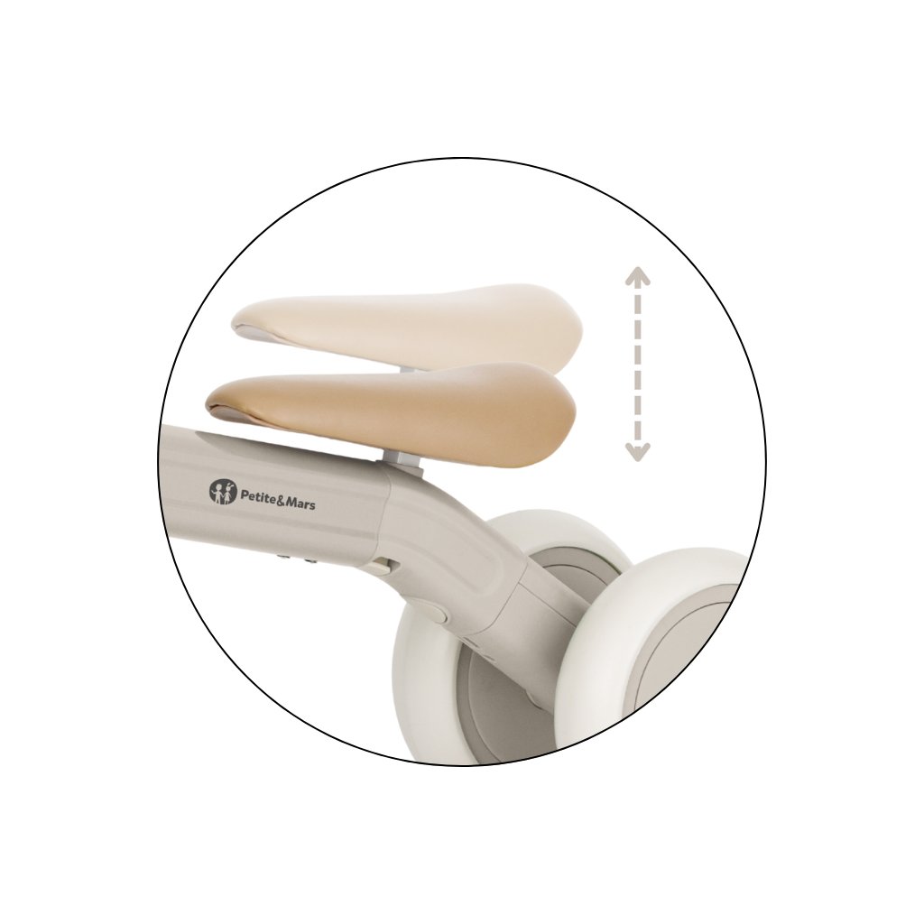 Bingo má otočné riadidlá, dve nastaviteľné výšky sedadla a váži len 2,3 kg, takže ho rodičia bez problémov prenesú – aj popri taške či dieťati v druhej ruke. Penové kolieska sú tiché a zvládnu interiér aj vonkajší povrch. Celý dizajn pôsobí moderne, jemne a zároveň nadčasovo.