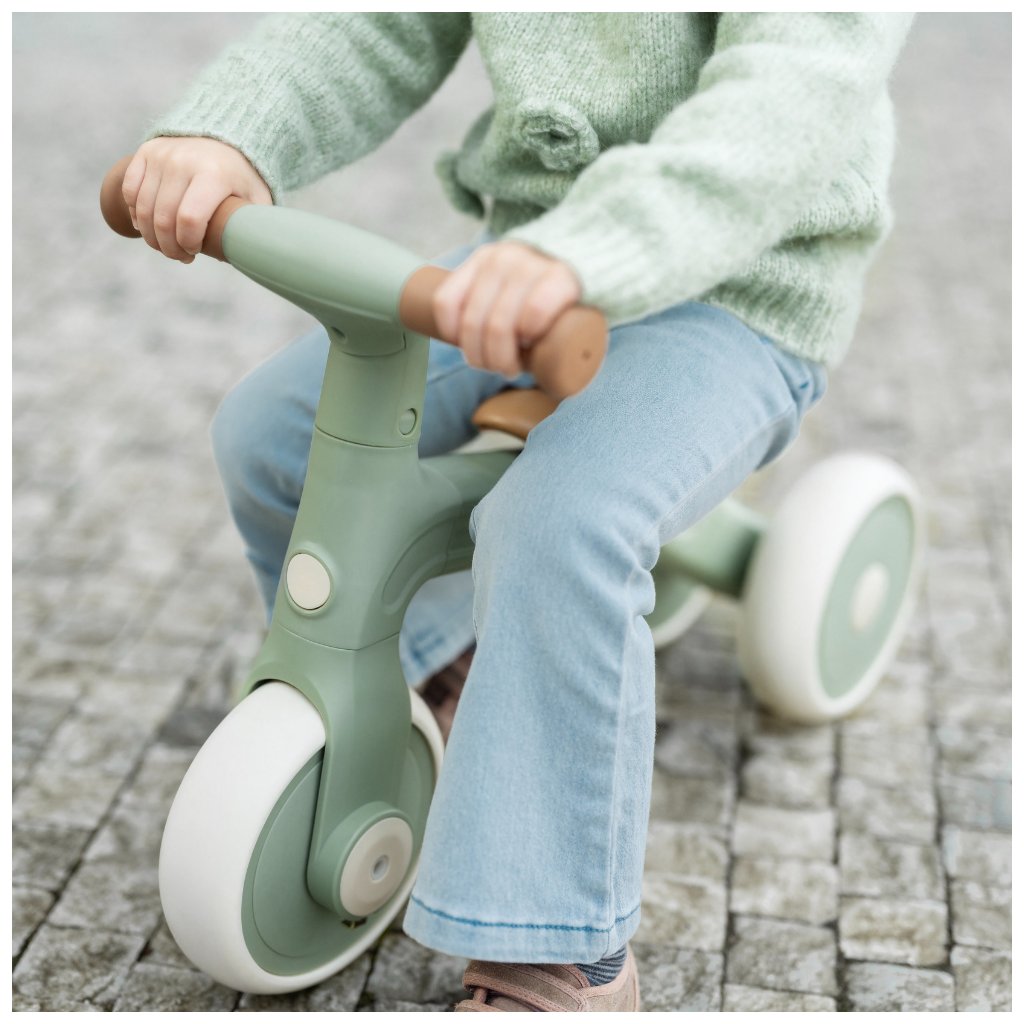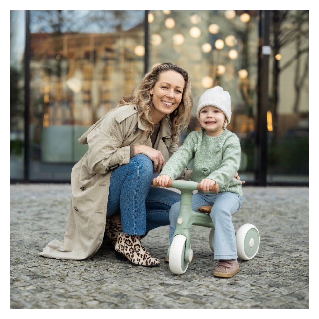 Bingo má otočné riadidlá, dve nastaviteľné výšky sedadla a váži len 2,3 kg, takže ho rodičia bez problémov prenesú – aj popri taške či dieťati v druhej ruke. Penové kolieska sú tiché a zvládnu interiér aj vonkajší povrch. Celý dizajn pôsobí moderne, jemne a zároveň nadčasovo.