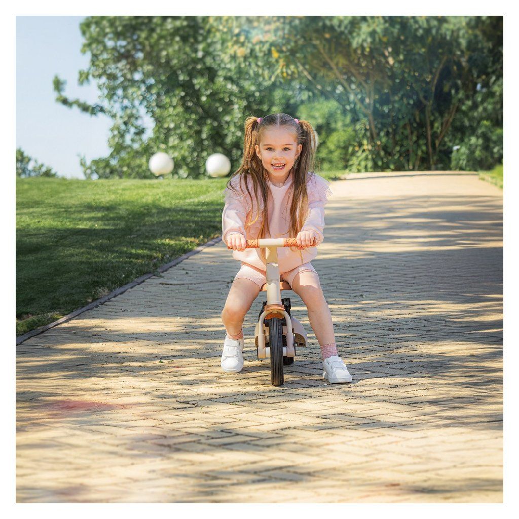 Multifunkčná trojkolka určená pre deti od 1,5 do 5 rokov alebo do 25 kilogramov. Je to nielen dopravný prostriedok na presun a učenie sa rovnováhy, ale aj spoločník pre rastúce dieťa počas mnohých vývojových fáz. Premyslená transformácia bicykla sa prispôsobuje potrebám dieřatka podľa toho, ako sa vyvíjajú jeho motorické schopnosti. Spočiatku je to trojkolka s možnosťou asistencie rodiča, zatiaľ čo konečná verzia je štandardný bicykel s pedálmi, bez akýchkoľvek ďalších podporných prvkov. Vďaka takýmto zmenám môžete pomôcť svojmu dieťaťu naučiť sa jazdiť na dvoch kolesách.