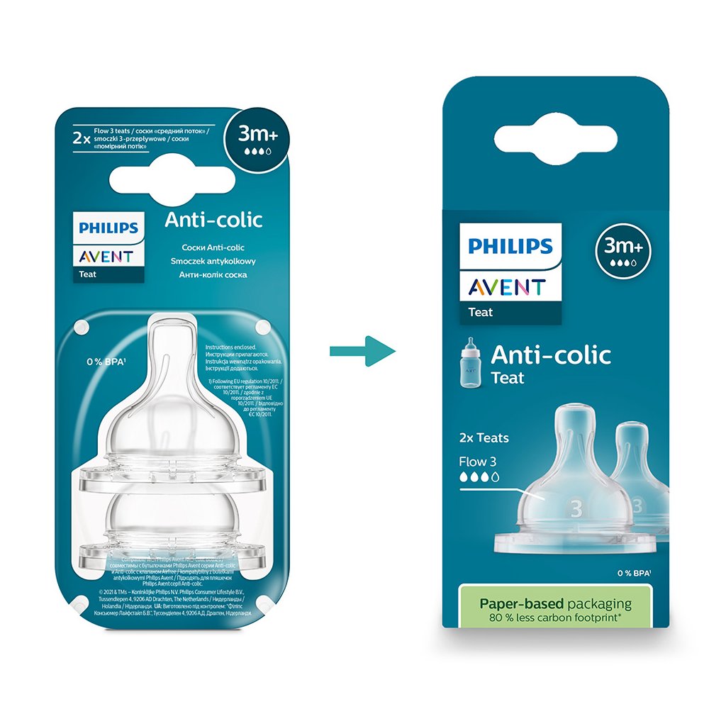 Silikónový cumlík AVENT má jedinečný patentovaný okraj, ktorý funguje ako jednosmerný ventil. Cumlík umožňuje prúdenie vzduchu do fľaštičky počas kŕmenia, čím zamedzuje vzniku vákua vo fľaštičke. Dieťa sa nemusí cumlíka pri kŕmení púšťať a môže piť súvisle ako pri dojčení bez prehĺtnutia vzduchu.
