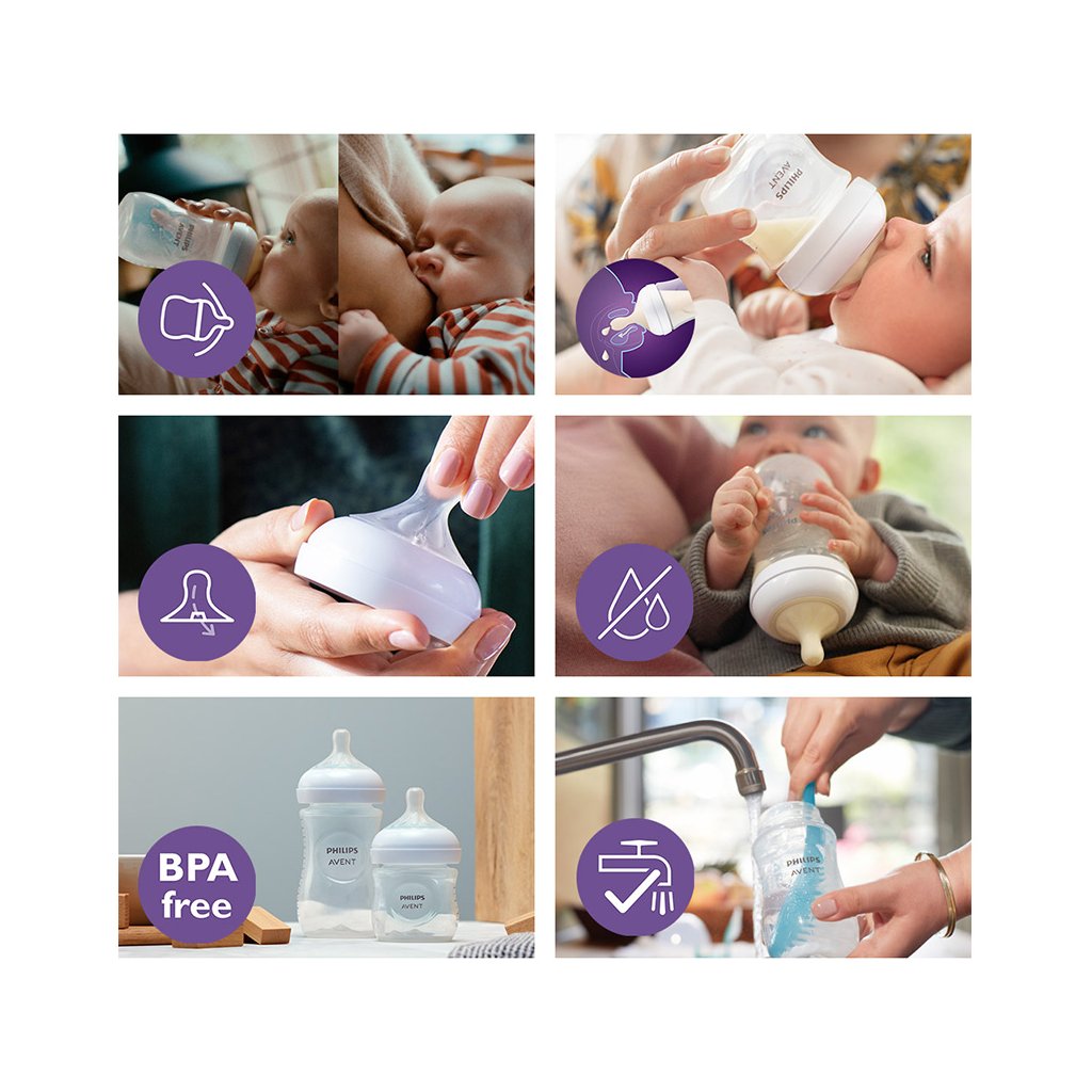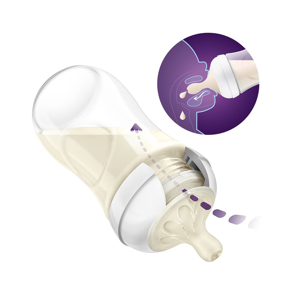 Cumlík Natural Response funguje v súlade s prirodzeným rytmom kŕmenia dieťaťa, takže môžete ľahko kombinovať dojčenie a kŕmenie z fľaše. Má jedinečný otvor, ktorý uvoľňuje mlieko len keď dieťa aktívne pije. Takže, keď si dieťa urobí prestávku na prehltnutie a nadýchnutie, pozastaví sa aj tok mlieka.