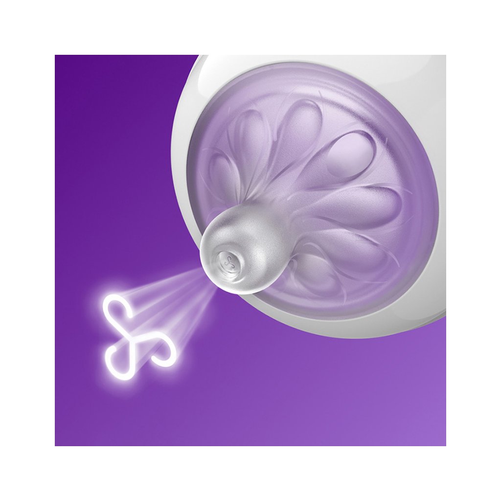 Široký, mäkký a pružný cumlík je navrhnutý tak, aby napodobnil tvar a pocit z prsníka a pomohol dieťaťu pohodlne sa prisať a kŕmiť.