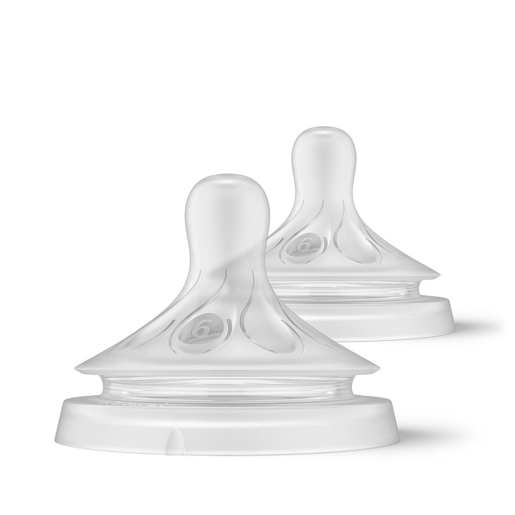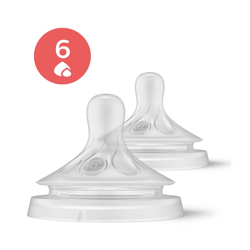 Každé dieťa sa kŕmi inak a vyvíja sa vlastným tempom. Navrhli sme niekoľko rýchlostí prietoku, aby ste našli tú najlepšiu pre vaše dieťa a mohli ste si fľašu prispôsobiť. Všetky cumlíky Natural Response sú vyrobené z mäkkého silikónu.