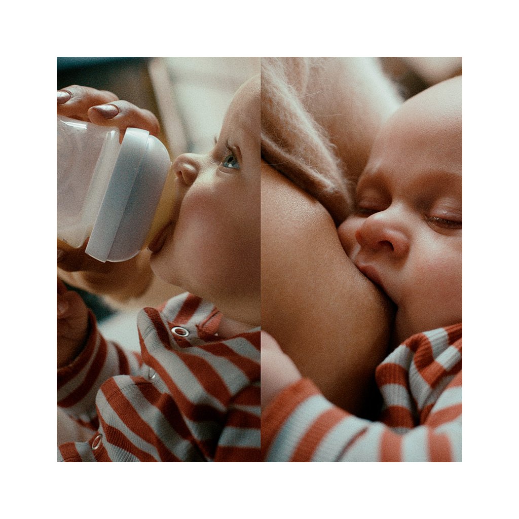Široký, mäkký a pružný cumlík je navrhnutý tak, aby napodobnil tvar a pocit z prsníka a pomohol dieťaťu pohodlne sa prisať a kŕmiť.