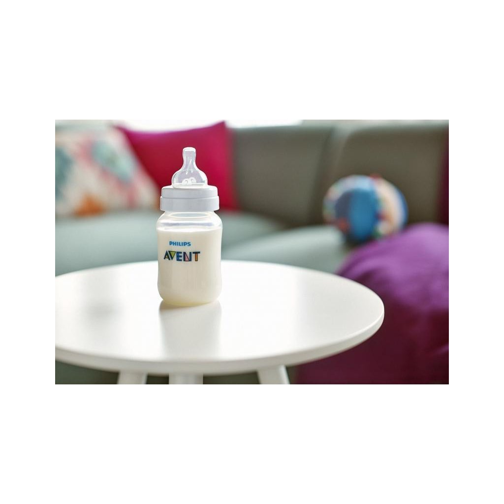 Používaním dojčenských fliaš AVENT s jedinečným patentovaným silikónovým cumlíkom s ventilom predchádzate prehĺtnutiu vzduchu počas kŕmenia a znižujete pravdepodobnosť vzniku koliky.